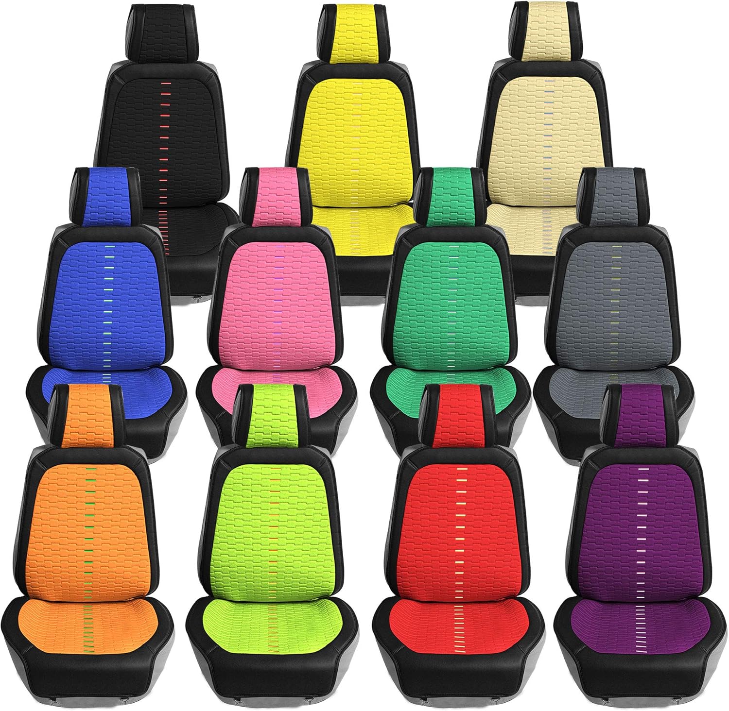 FH Group got you covered! Our premium cloth car seat covers not only provide the best protection for your car's upholstery against any type of mess but they also enhance the looks of your car's interior. No need to worry anymore about spills, stains, mud, or anything damaging your original car seats because this car seat protector got your back. Every car seat cover we make is built with high-quality, durable materials that will protect your car's upholstery at all times. We offer automotive seat covers in numerous fabrics, colors, and designs, so you can easily find the seat cover for cars that fits your style the most. We have car seat covers for women, for men and for everyone. Our bucket seat covers are compatible with most sedans, SUVs, and vansโ bucket seats thanks to the universal high back seat cover design that delivers the snug fit you're looking for, no matter if the front seatsโ headrest is removable or not. Also, because safety is one of our main goals, this front set of cover for car seats is airbag compatible (officially tested!). We understand messes happen, thatโs why these waterproof seat covers for cars are convenient for any type of driver. FH Group car seat covers are a great car interior accessory for your vehicle. We have it all: car seat covers for SUV, car seat covers for autos, car seat covers for vans, you name it!.