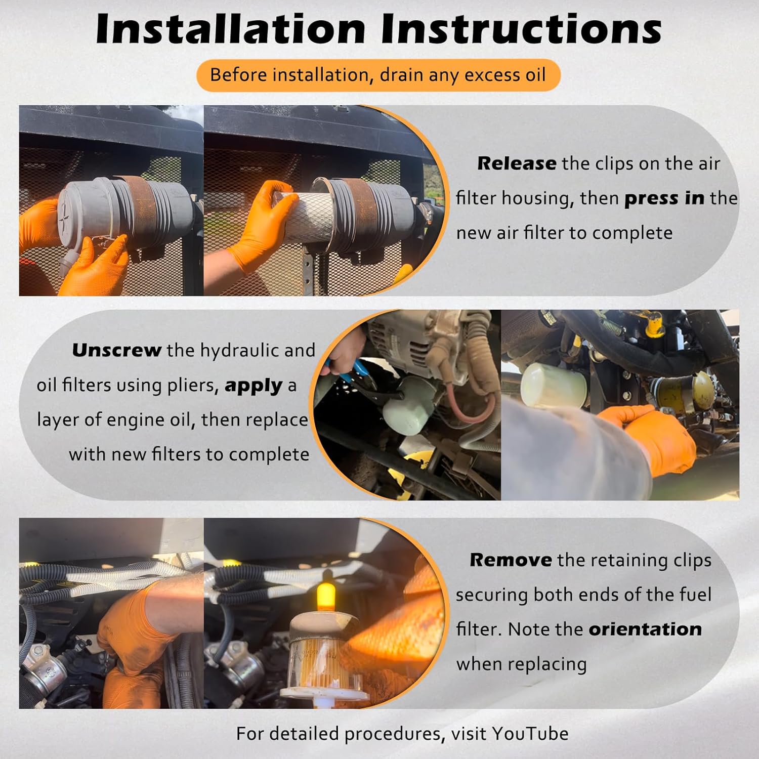 | Included Components | Air filter, Hydraulic filter, Oil filter |