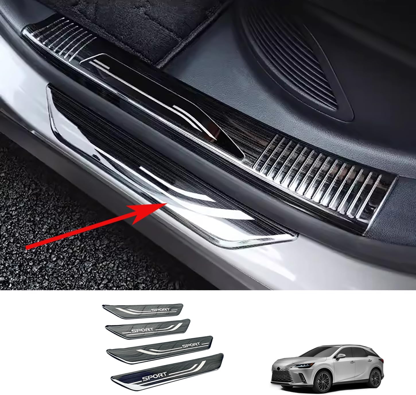 Application:Compatible with Lexus New RX RX350 RX350h RX500h F Sport 2023 . Material and Fashion Design: Made of premium Stainless Steel material.Colors: Brushed Black Style .They always show you charming and highlight your dear car.It will give your car a brand new unique look ! Installation :Easy installing,without any tools.Automotive adhesive tape is attached. Installation method: Step 1:please clean the place with 50% alcohol to make sure no dust. Step 2:remove the film in back; Step 3 :If the temperature is below 18 degrees,heat the glue by hot air gun;Step 4:install the products in the right place ,Don't wash your car within 68 hour. Package Include: 4PCS per set. Service: Please do not hesitate to tell us if any question, we will do our best to help you.