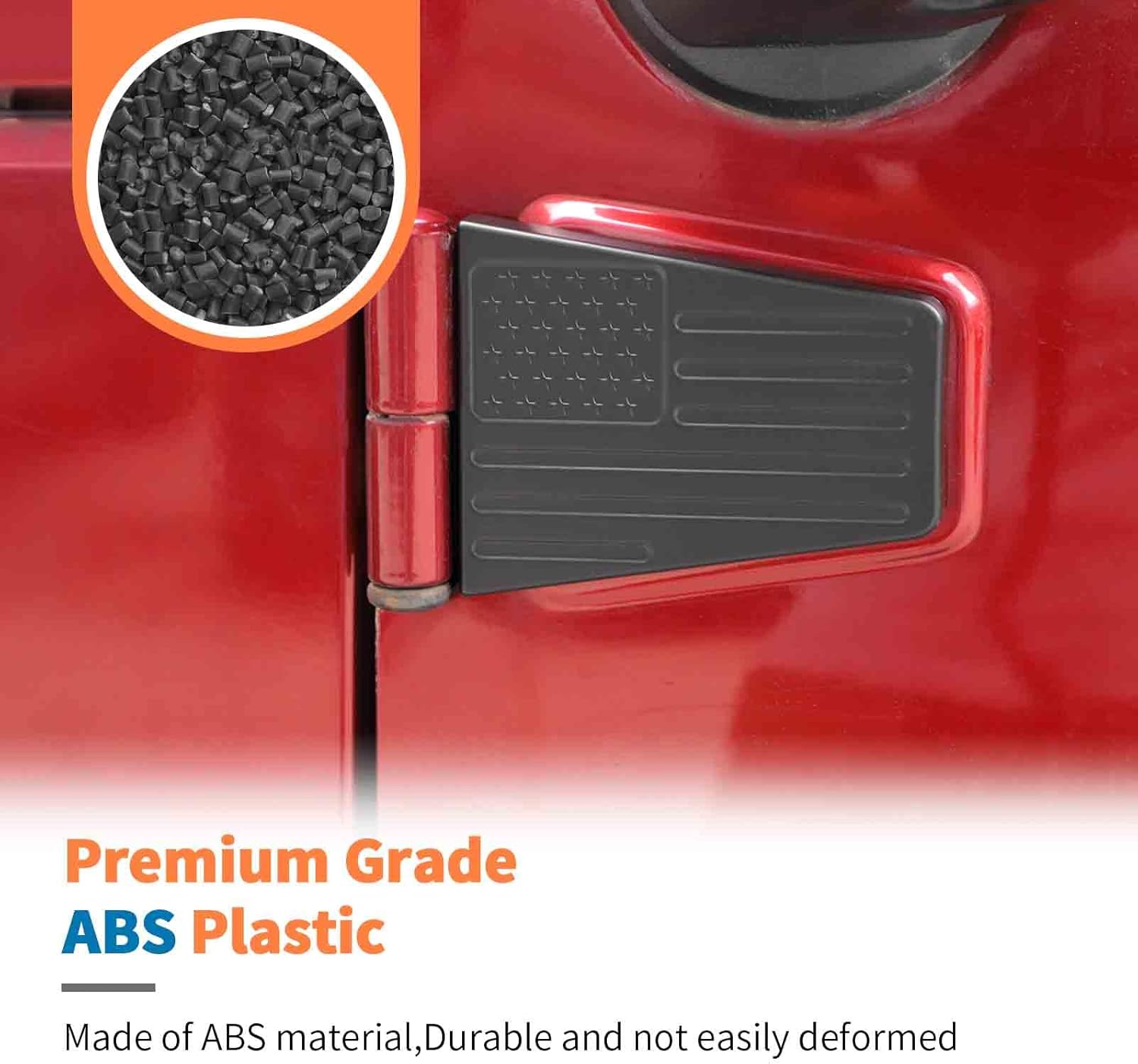 Welcome to JeCar JeCar Specializes in Designing Innovative, Personalized, and Cool Car Accessories. Provide Customers with Convenient Car Tuning Products and Solutions. From Interior to Exterior, JeCar Offers a Full Range of Automotive Attachment Accessories. Help Car Owners Enjoy the Fun of Redecorating Their Cars. Item Description: JeCar Matte Black American Flag Door Hinge Covers Protector for 2007-2018 Jeep Wrangler JK JKU 4-Door Condition: 100% Brand New Material: ABS Color: Matte Black Features - Personalized custom design to create a unique look for your Wrangler JK; - Adding new beauty to your Wrangler JK; - Show off your personality and coolness with distinctive accessories; - Protect your Wrangler door hinges from potential damage caused by external factors or daily wear and tear. - High-quality material, durable, with good durability, and weather resistance, brings long-lasting protection for your Wrangler JK; - Easy to install, no specialized tools required. Installation Tips: * Please clean the covered area thoroughly; keep it dry without dust; * Heat the adhesive tape with a hair dryer or lighter; * Paste the accessories in the corresponding position and press them with your hand to make them more solid. Package Included: 8pcs Set Door Hinge Covers