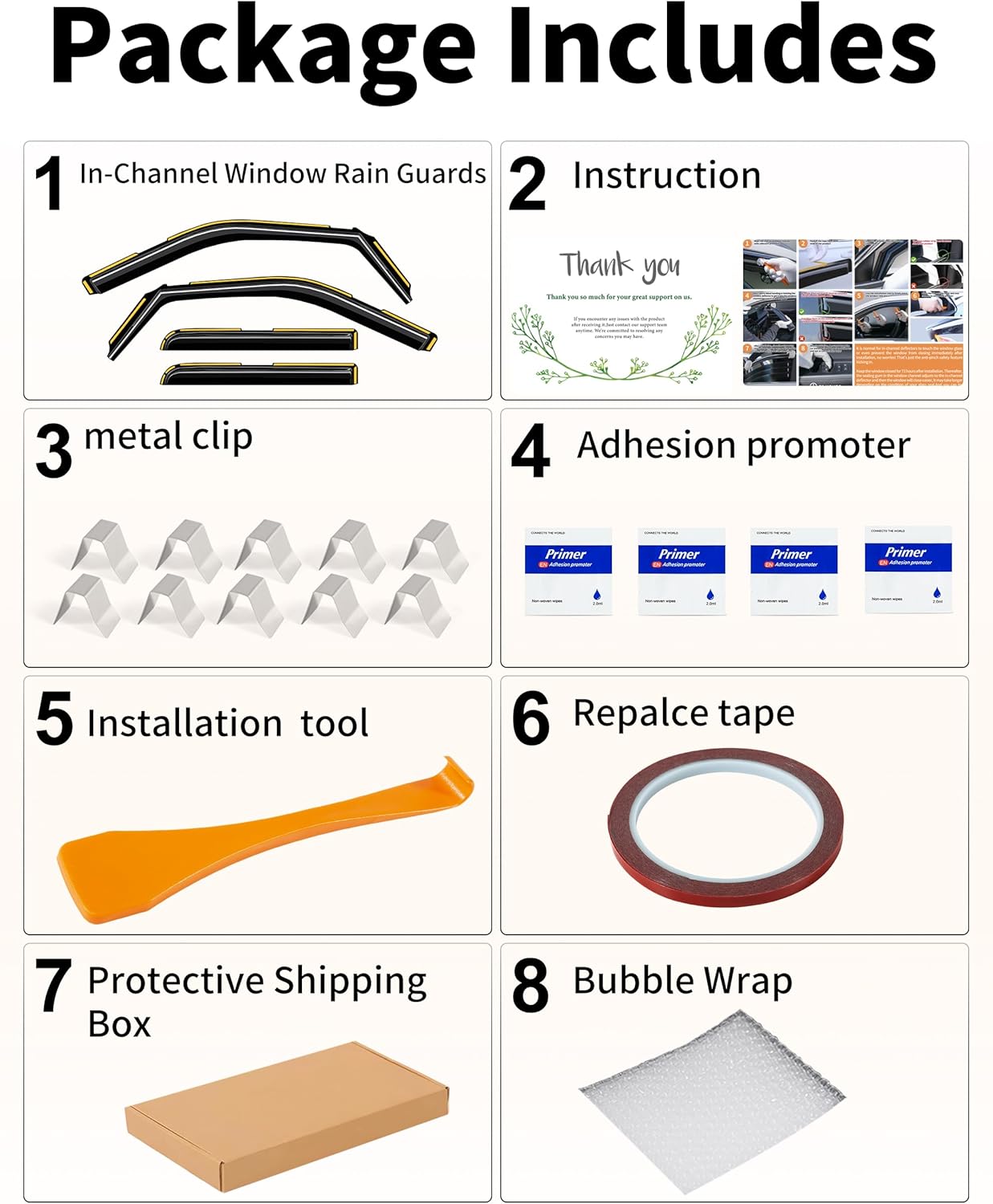 | Included Components | Rain Guards x 4 |