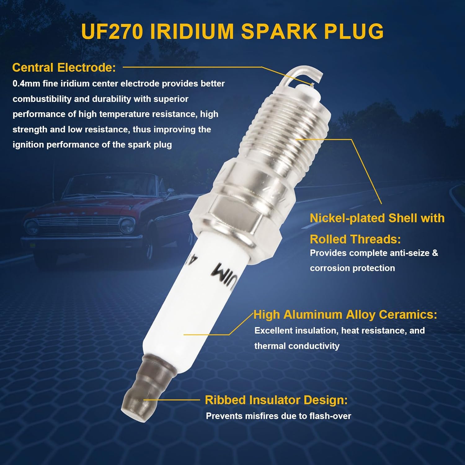 | Included Components | 2 pcs of 4-slot wire separators, 8pcs UF-414 Round ignition coils, 8pcs high-quality 8mm spark plug wires, 8pcs iridium spark plugs |