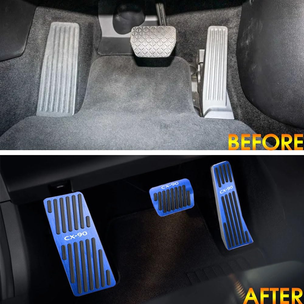 Fit Mazda CX-90 with Automatic Transmission as below: For Mazda 2024 2025 2026 CX-90 Pedal Cover Kit: High-quality Material: Dull polish aluminium alloy with TPE rubber, environmental protection, scratch proof and durable. The edges of the aluminium alloy parts are processed to be dull Antislip Surface Design: Prevent from slipping off. Improve the overall driving experience and security Upgraded Design: Enhance the appearance of your Mazda with our pedal kit Easy Installation, NO DRILL is required: 1. Brake Pedal: Take off the factory rubber by screwdriver, then put on the brake pedal cover from top right to bottom left 2. Gas Pedal: There is no rubber on it. Just slip the gas pedal cover on directly from top to bottom 3. Rest pedal:We have double-sided tape on the back of the rest pedal, which is installed directly through the double-sided tape. * If it's hard to the brake pedal cover on, you can put it in hot water to make the rubber softer, or add some soap Package included: 1x gas pedal cover 1x brake pedal cover 1xrest pedal cover