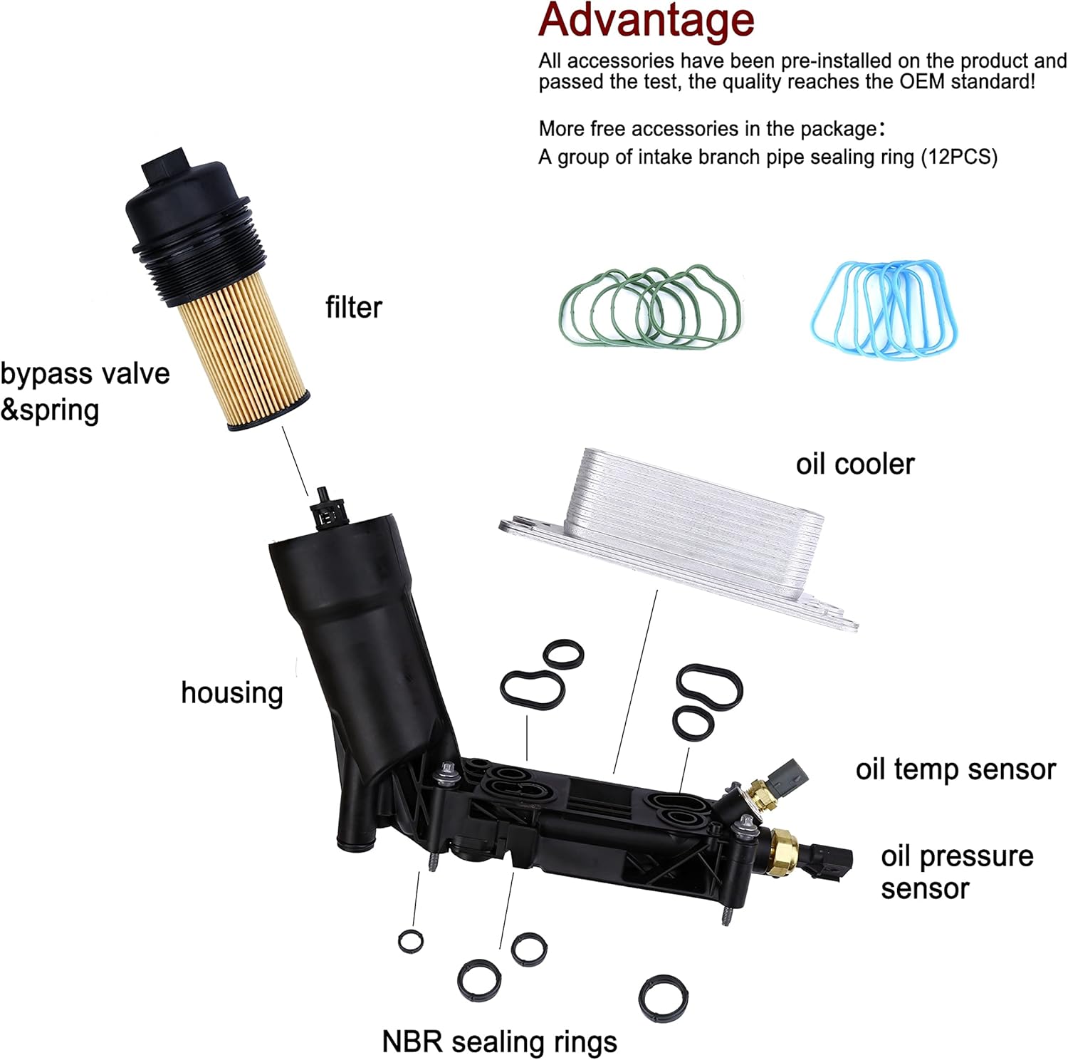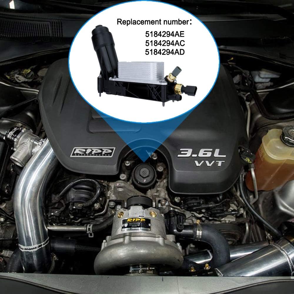 Package includes: 1 * Oil Filter Housing Adapter Assembly(include pre-installed oil filter, fluid temperature sensor, oil pressure sensor, Bypass Valve & Spring and NBR sealing ring. also comes With 12 pieces of Intake Manifold Plenum Gasket Set) Replaces part number: 5184294AE 5184294AD 5184294AC Fitment: 2011-2013 Chrysler 300 With 3.6L V6 Engine 2011-2013 Chrysler Town and Country With 3.6L V6 Engine 2011-2013 Chrysler 200 With 3.6L V6 Engine 2011-2013 Dodge Journey With 3.6L V6 Engine 2011-2013 Dodge Charger With 3.6L V6 Engine 2011-2013 Dodge Challenger With 3.6L V6 Engine 2011-2013 Dodge Avenger With 3.6L V6 Engine 2011-2013 Dodge Caravan With 3.6L V6 Engine 2011-2013 Dodge Durango With 3.6L V6 Engine 2013 Ram 1500 With 3.6L V6 Engine 2012-2013 RAM C/V with 3.6L V6 Engine Warranty: One years warranty after receiving. All products shipped are tested and easy to install. We offer true worry-free shopping experience. 100% brand new and high quality guaranteed.