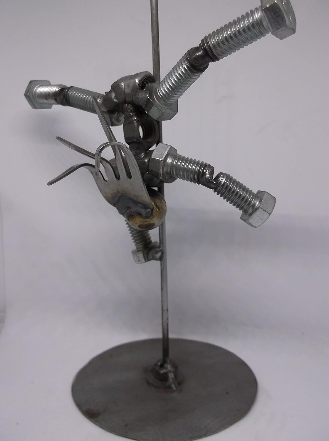This dancer makes it look so easy, is having a good time, and is showing off her strength and flexibility. This figurine is handcrafted, using recycled metal bolts, nuts, bearings, and other scrap metal. This exotic dancer figurine would look great displayed on a tabletop, a bookshelf, on a desk as a paperweight, your work-out area, your living room, or displayed in your favorite night-club, etc.. This figurine makes a great little gift for your club and dancing friends, a DJ, stripper, :-). Buy several to give as gifts, and also keep one for yourself. All items are handcrafted using recycled materials so each item has its own unique characteristics. SIZE: 7"height x 3"length x 5"width Dimensions are approximate and may differ slightly. HANDMADE IN THE USA