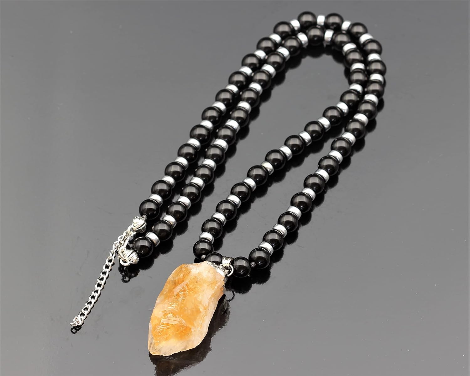 Product Description-ALL THE PRODUCTS AT ELISAJEWELRYART ARE HANDMADE AND MADE WITH NATURAL BEADS. -CRYSTAL PENDANT NECKLACE COLLECTIONThis handmade necklace collection features natural crystal pendants crafted in raw or tumbled form, each showcasing its own organic texture, color variation, and mineral character. Every necklace is designed with a strong focus on the pendant, allowing the natural gemstone to remain the central element of the piece. Due to the natural formation of the stones, each pendant varies in shape, surface texture, and appearance, making every necklace truly one of a kind.Bead Size: 8mmPendant Size: Various between 2 to 5 cmNatural Crystal PendantNatural Black Onyx BeadsNatural Hematite SpacersStrong Waxed Macrame CordGift PouchCardboard Jewelry Box This adjustable necklace is made to order in different sizes. Necklace length options range from 14 inches to 40 inches, increasing in 2-inch increments. Please choose your preferred length from the variation menu above.We recommend the following to care for your jewellery: – Avoid contact with all water, perfumes, bleaches and liquids. Every piece made from materials and objects found in nature. Some of these, like the gemstones, metals, cotton thread, can be adversely affected by liquids and moisture. Storing your jewellery in a safe, dry place when not wearing them helps prolong their physical beauty. – Avoid heat and over exposure to the sun. – To make your jewellery shine and look amazing, we recommend you gently wipe your jewellery with a soft cloth to retain its shine and luster. – All our items are made with precious and semi-precious stones, which all natural stones, and may vary in colour, shape and size.