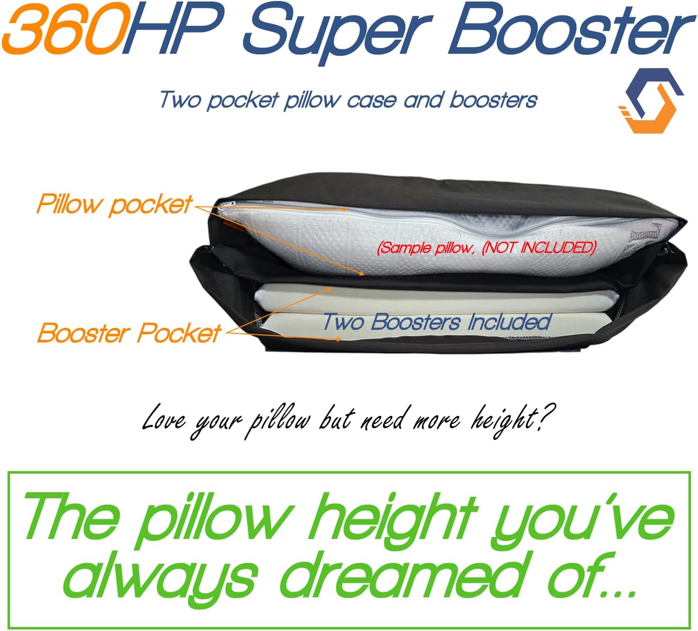 Patented pillow bolster set includes one pair of 1 1/2" risers and two patented double pocket pillowcases. This allows you to raise the height of your existing pillow up to 3 inches.