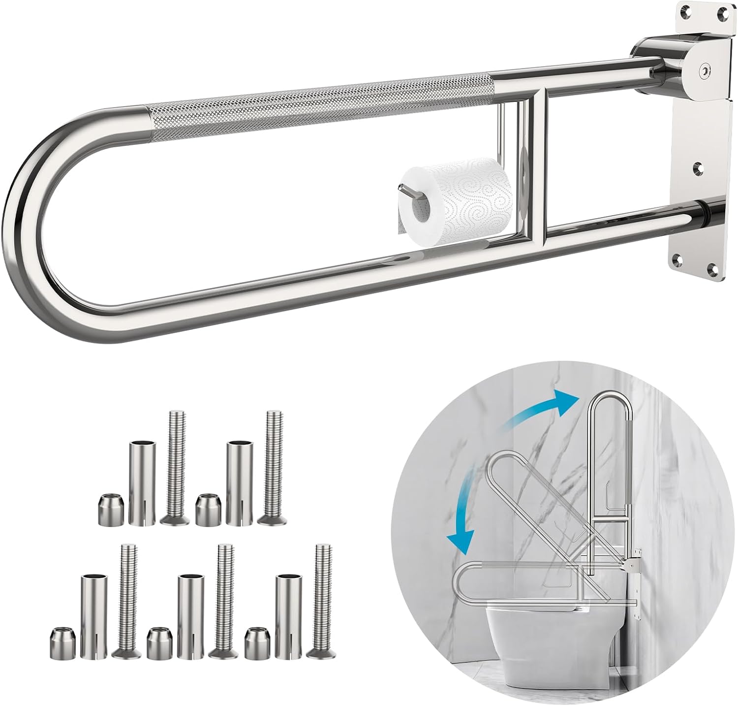 | Included Components | flip down grab bar with toilet paper holder, grab bar toilet paper holder combo, grab bar toilet paper holder nickel, handicap grab bars rails 30-inch toilet handrails bathroom safety bar, toilet grab bar foldable |