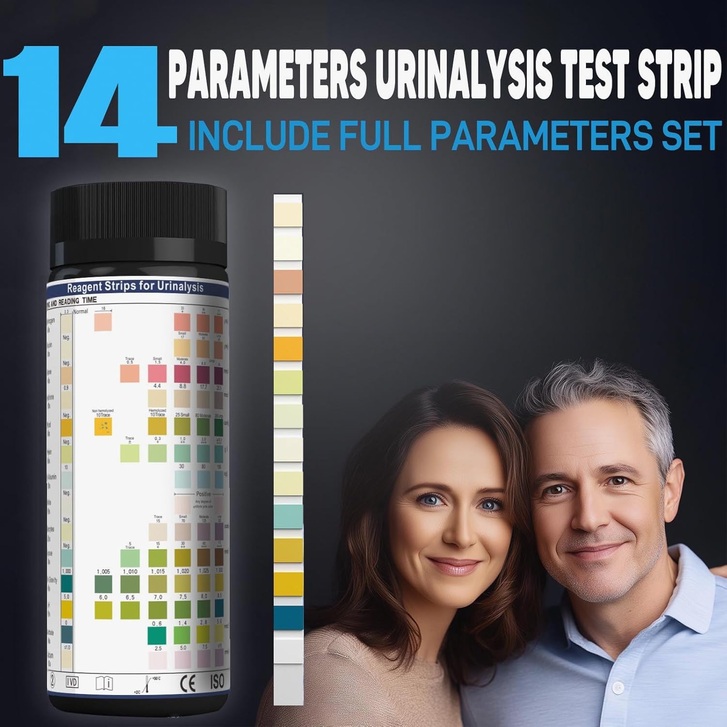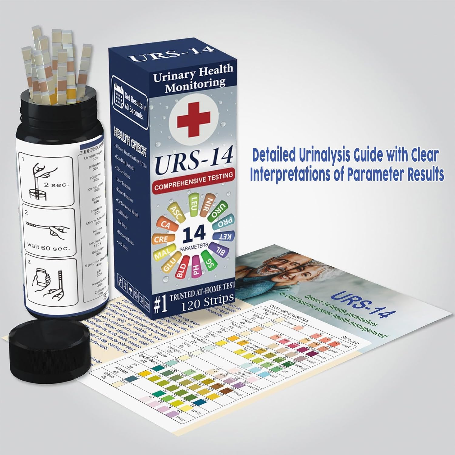 URS Urine Reagent Test Strip for 14 Parameters Urinalysis - Self Testing at Home in 60 Seconds for Men and Women PH, SG, Prot, KET, BLO, BIL, CRE, Kidney, Liver, UTI, Keto Diet, Ketosis, and +7 More