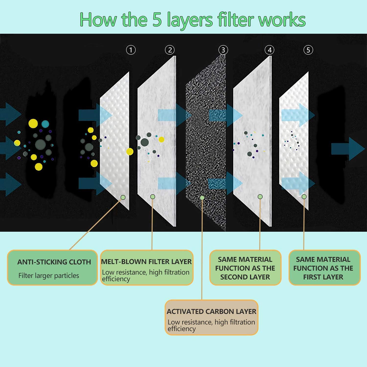 New Upgrade 3D PM2.5 Activated Carbon Filter Insert Adult Five layers Anti Haze PM 2.5 Filter Dustproof Air Pollution Replaceable Paper Larger Protection Area