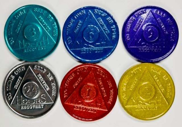Bulk Lot 150 Aluminum Chips 6 Rolls AA - 1 Roll of Each Month 1, 2, 3, 6, 9 and 1 Roll of The 24 Hour Chips 150 AA Tokens/Medallions