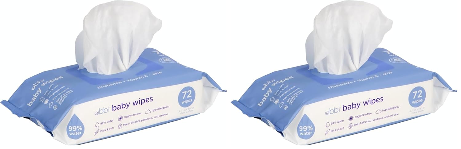 Ubbi’s baby wipes are expertly designed with baby’s sensitive skin in mind. Dermatologist tested and EWG certified, our baby wet wipes meet the highest standards for your child’s safety and health. Fragrance-free and hypoallergenic, they minimize the risk of allergic reactions, making them perfect for delicate baby skin. Made with 99% pure water, our formulation is made without harsh chemicals, fragrances, alcohol, dyes, parabens and phthalates: offering peace of mind for parents. Each wipe is thick and absorbent, providing effective cleaning while remaining soft to the touch. The strong no-tear construction ensures durability during use, while the texture grip feature guarantees a thorough clean. Our water wipes are as natural as they are effective. Pair these premium baby wipes with Ubbi’s wipe dispensers or any standard baby wipes dispenser. Our unscented baby wipes come in a 72 pack, 3-pack bundle of 216 wipes or a value pack of 800 count. Ubbi’s baby wipes are the ideal choice for keeping your baby clean, comfortable, and happy.
