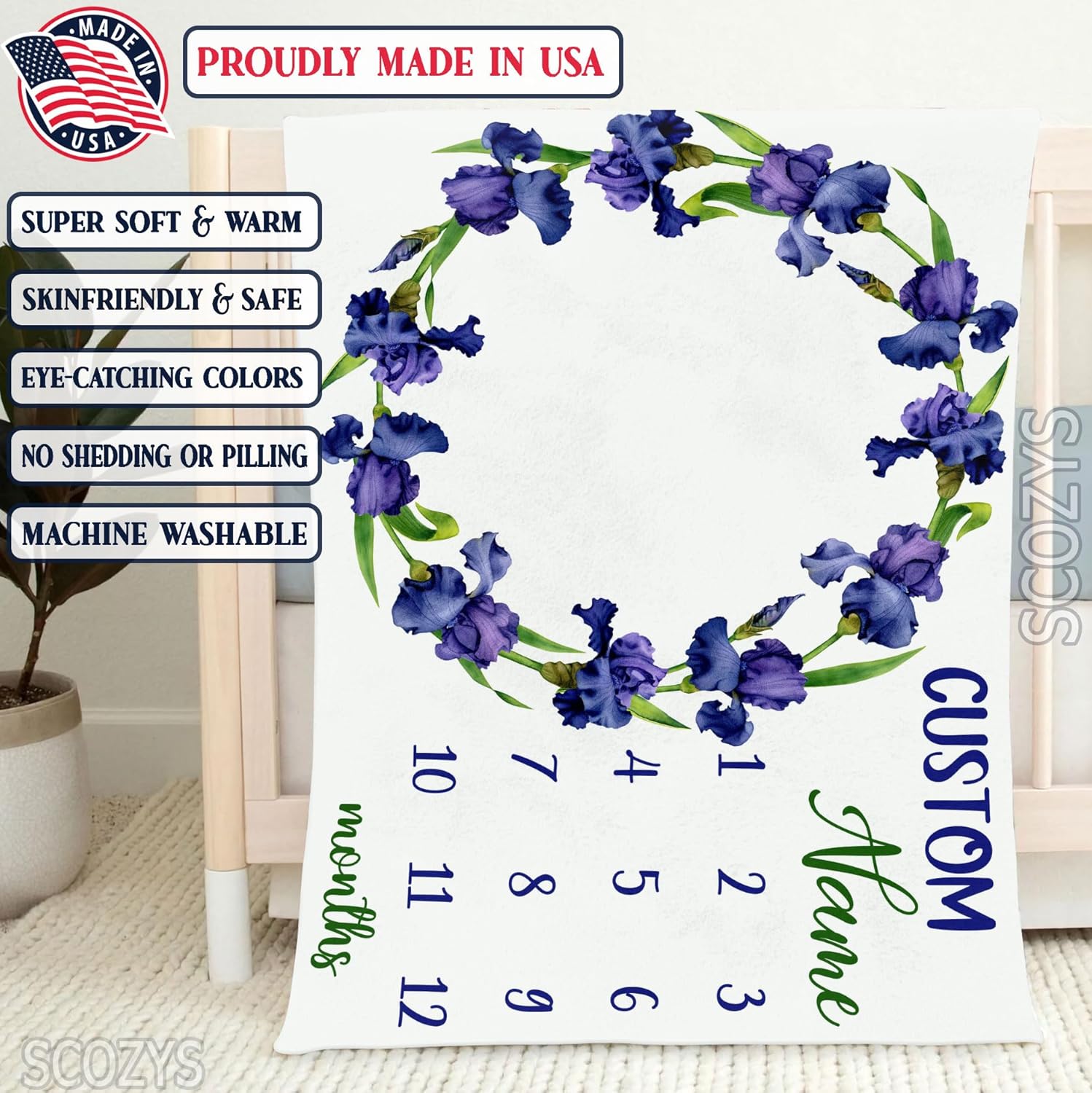 This personalized iris flower monthly blanket are super soft and great for baby. Click "Customize Now", add your customized information and special requests, if any. Creating an amazing iris theme gift for newborn baby, baby shower, baby's 1st Christmas or for nursery decor. 3 sizes are available according to your needs: Baby Blanket (30x40 inches), Medium (50x60 inches), Large (60x80 inches). Luxurious, silky, cozy, ideal for snuggling; Thickness: 0.24 inch. Full color all over print; Prints edge to edge on one side. Feel free to contact us 24/7, we are here to help you with any questions or concerns you may have.