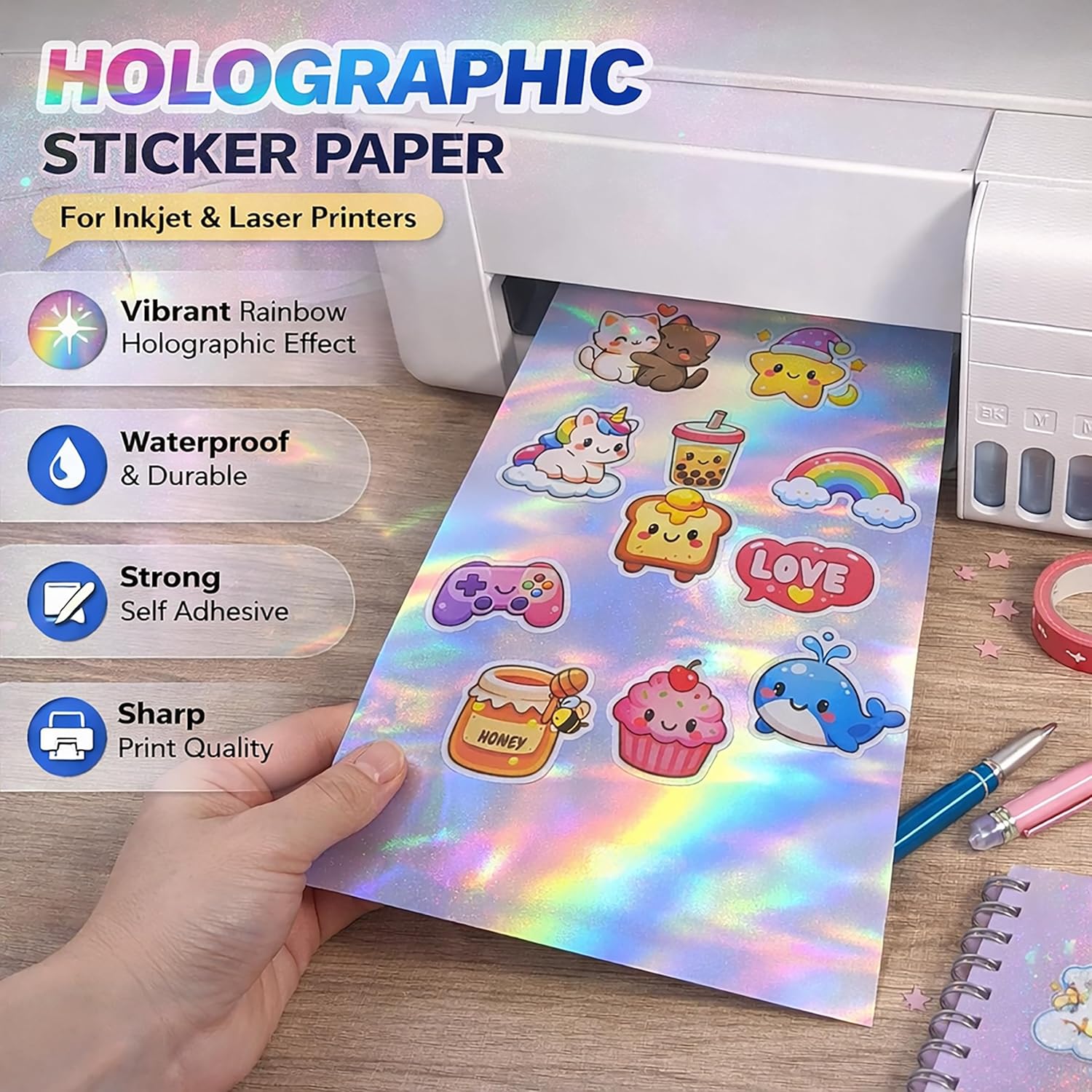 1.Sticker Paper Waterproof Sticker Paper . 2.Extremely Durable Waterproof Material. 3.Scratch And Tear Resistant. 4.Time Tested - Can withstand months of direct sunlight and rain. 5.Comes Securely Packed:In a protective cardboard sleeve. 6.Extremely Durable Waterproof Material.
