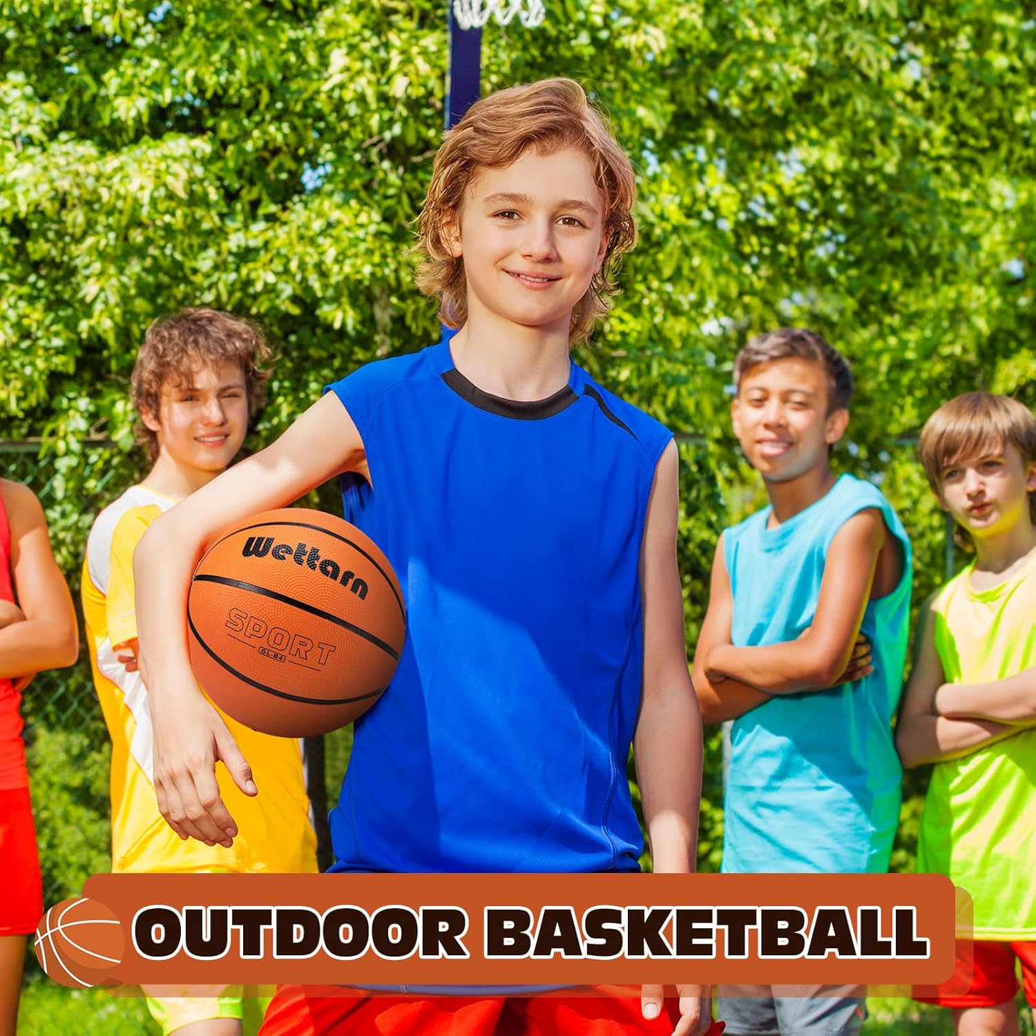 Features: Nice gifts: The outdoor rubber basketball is suitable for sending to your friends, colleagues, relatives, neighbors, family members and others you care and love, they will be happy to receive this gift. Suitable for most people: The basketball official size is reliable and suitable for teens and adults, such as basketball fans, students, and those who need to lose weight and exercise. When exercising, it is suggested to do stretching exercises first to avoid accidental injury, wear sports shoes and suitable clothes, and do not over exercise. Specifications: Basketball material: rubber Color: as shown on the picture Basketball size: standard size 7 design, approx. 29.5 inches Package includes: 6 x Rubber basketballs 1 x Pump 1 x Air belt 2 x Ball needles Notes: Manual measurement, please allow slight errors on size. The color may exist a slight difference due to different screen displays.