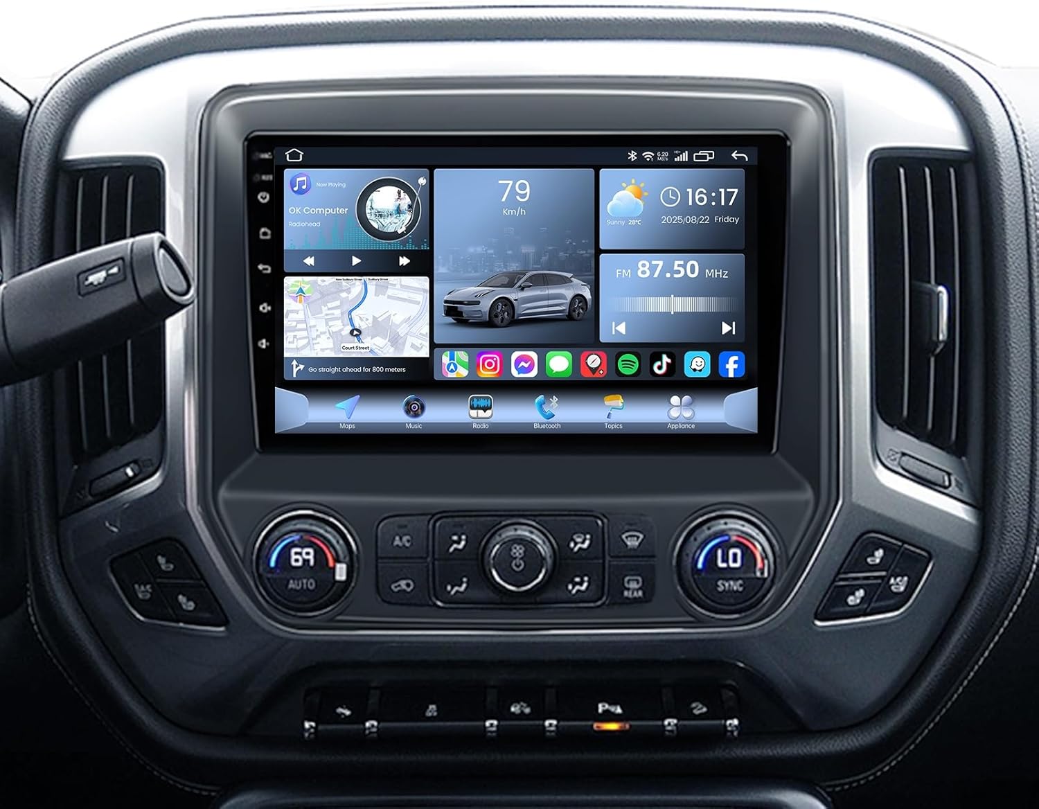 10.2" 8Core 8+128G Car Radio for Chevy Silverado GMC Sierra 2014 2015 2016 2017 2018: Android 15 FHD QLED Touch Screen Stereo 5G WiFi Wireless CarPlay Android Auto Bluetooth DSP 48EQ Backup Camera Mic