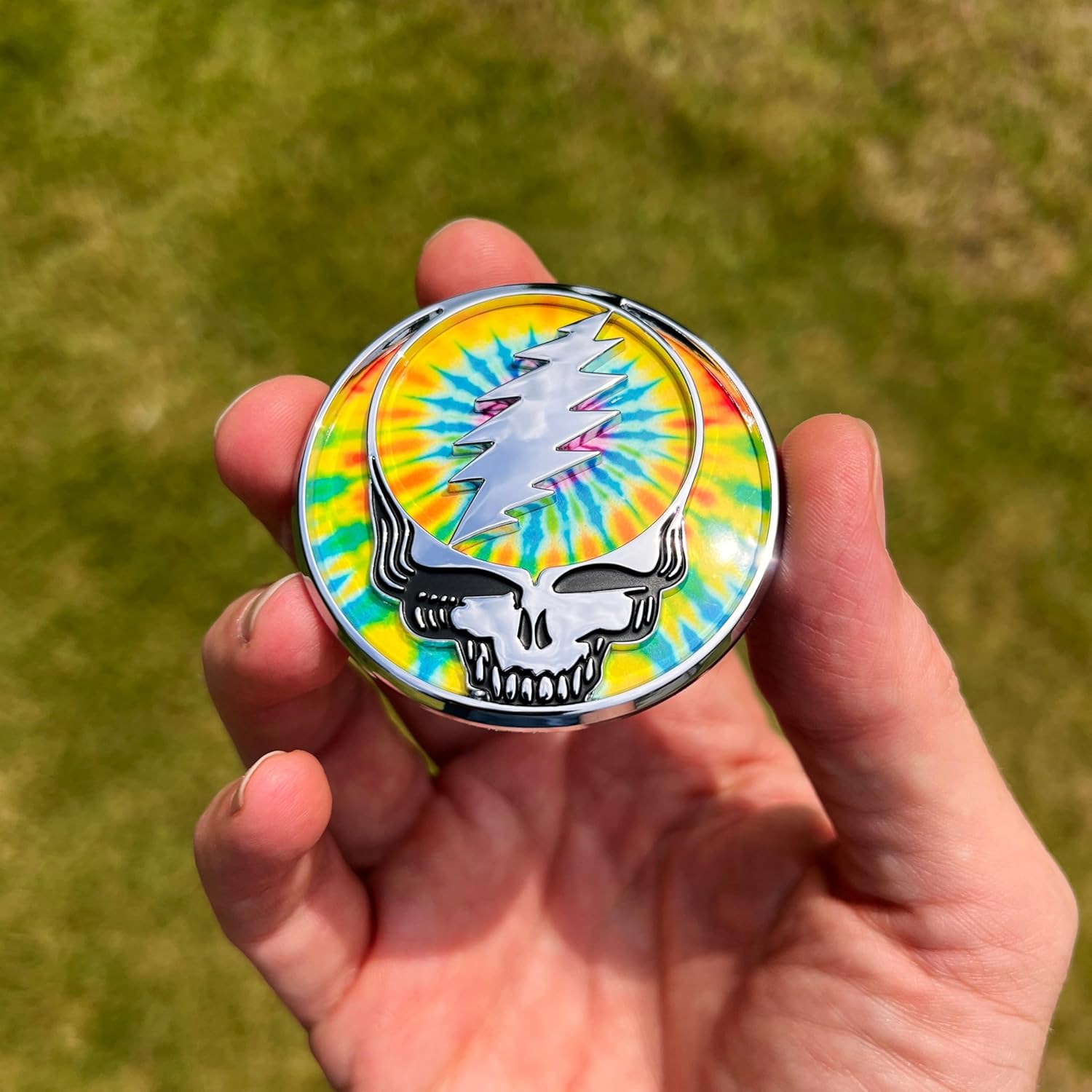 Introducing The Tie Dye Stealie Car Badge Emblem.A sleek and distinctive accessory that celebrates the spirit of driving with style and flair.Our badges can be applied to virtually any flat surface, such as laptops, coolers, cars, and more. They are completely safe for use on painted surfaces, including cars. This is because our badges are manufactured to the same specifications as badges used by all the renowned major car brands and manufacturers.The automotive industry standard is chrome-plated ABS plastic with automotive-grade adhesive, ensuring safety, durability, and longevity. Wide Application: Works perfectly as a car badge emblem, boat badge, laptop badge, luggage badge, cooler badge, tumbler badge... or just a "whatever you want to put it on" badge. Available in: ChromeMaterial: ABS PlasticDimension: 2.25โ diameter wideIntricate Detail Design: Showcasing fine craftsmanship and a keen attention to detail for a standout accessory.Versatile Gifting Option: Suitable for people of all ages and interests, making it a versatile gifting option for friends, family, or colleagues who appreciate distinctive accessories. NOTE: The back of the decal is equipped with 3M adhesive, which is safe to use on a wide variety of surfaces. We suggest pre-positioning your decal exactly.