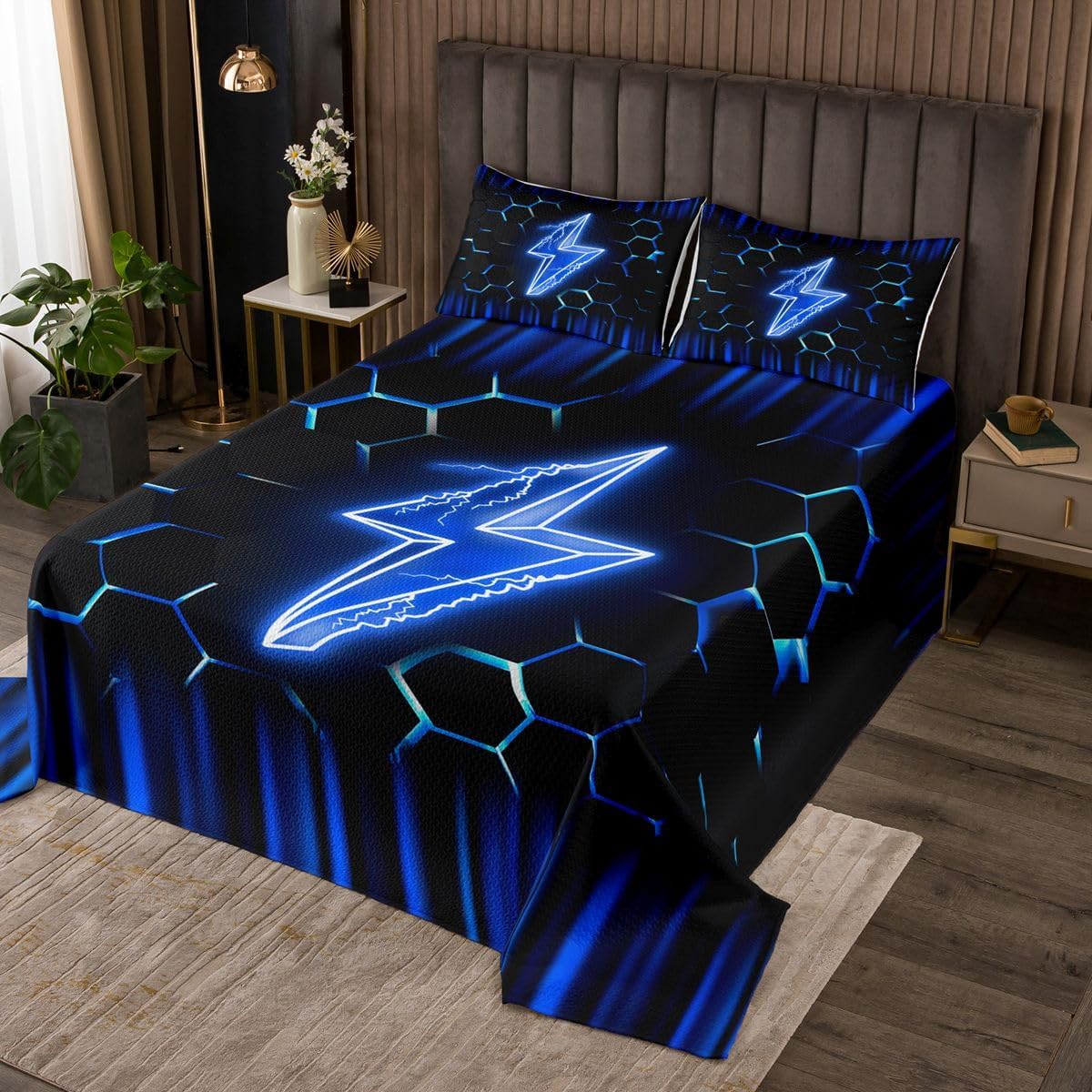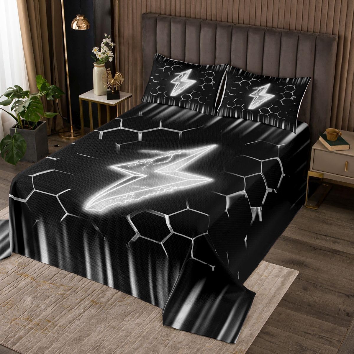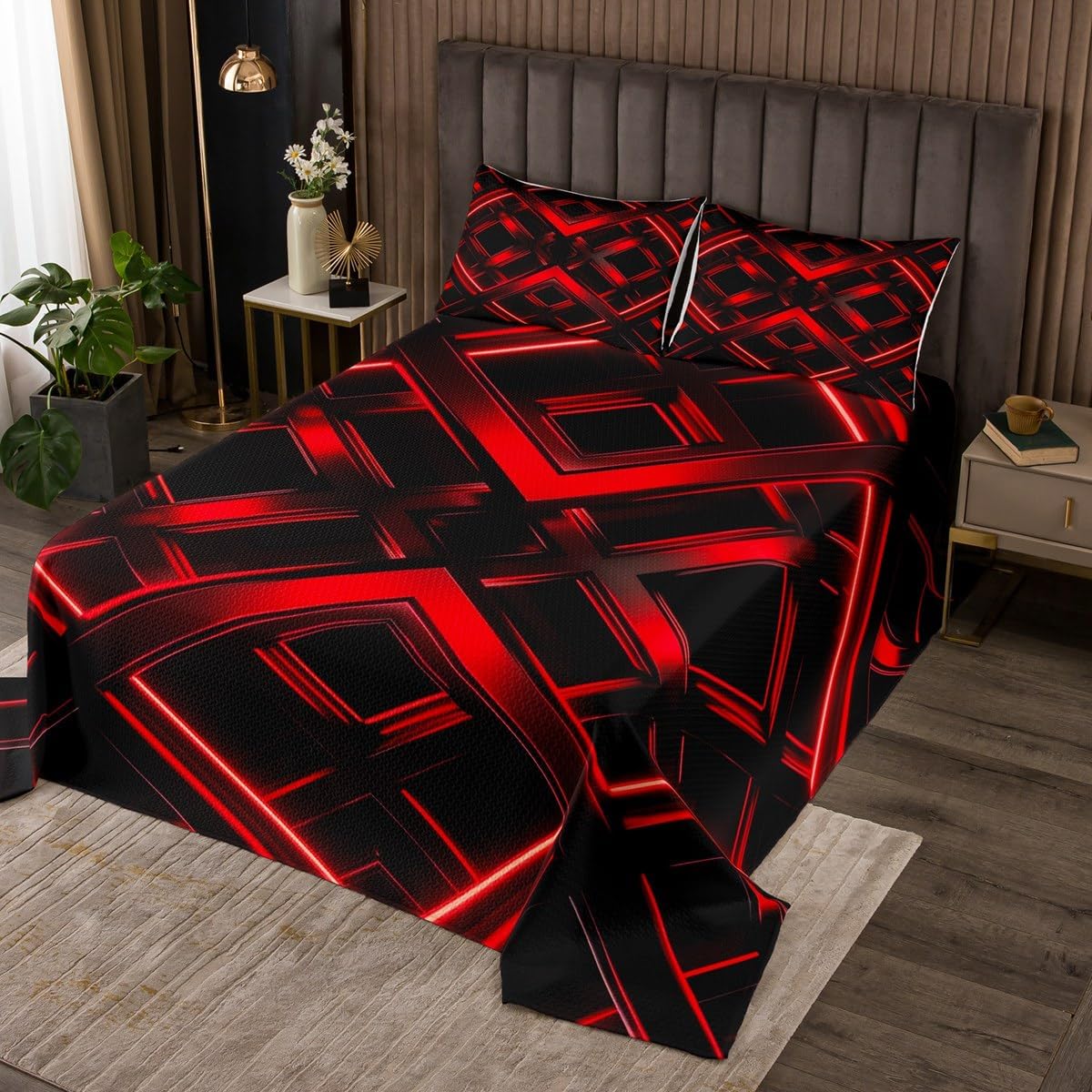Package Include: Bedspread and Pillowcase. Makeover your bedrooms every season with our bedspread! Perfect item for your room, girls boys youth room, master bedroom. Size Information: Twin size quilted bedspread 68"W x 90"L and 1 quilted pillow sham 30"W x 20"L Queen size quilted bedspread 90"W x 90"L and 2 quilted pillow shams 30"W x 20"L King size quilted bedspread 104"W x 90"L and 2 quilted pillow shams 36"W x 20"L Useful and practical: A luxurious product for homes, dorm rooms, hotels, guest rooms. Practical to use for being polyester, feels like cotton which is Super Soft and Breathable. No chemicals used, No dye substance harming the health of you or your family. Unique design: Vivid Colors won't fade thanks to new 3D digital printing methods. These unique designs match well with various color palettes of your rugs, curtains, headboard, furniture, and all other decor accessories. Personalized: As manufacturers of digital printed home textiles, we follow current trends and bring you the latest home fashion. More Decor: Search our store to get more christmas theme, new year theme, autumn fall theme, any holiday theme, modern abstract, farmhouse rustic theme, simple pattern, garden flowers etc. home decoration. Note: The Bedspread and Pillow Shams are printed on the Front Side Only, the back of them are white colored. Comforter is Not Include in the set. Warm Tips: 1. Please allow 1-3cm error due to manual measurement. 2. Actual color may vary from the color on your screen due to monitor color restrictions.