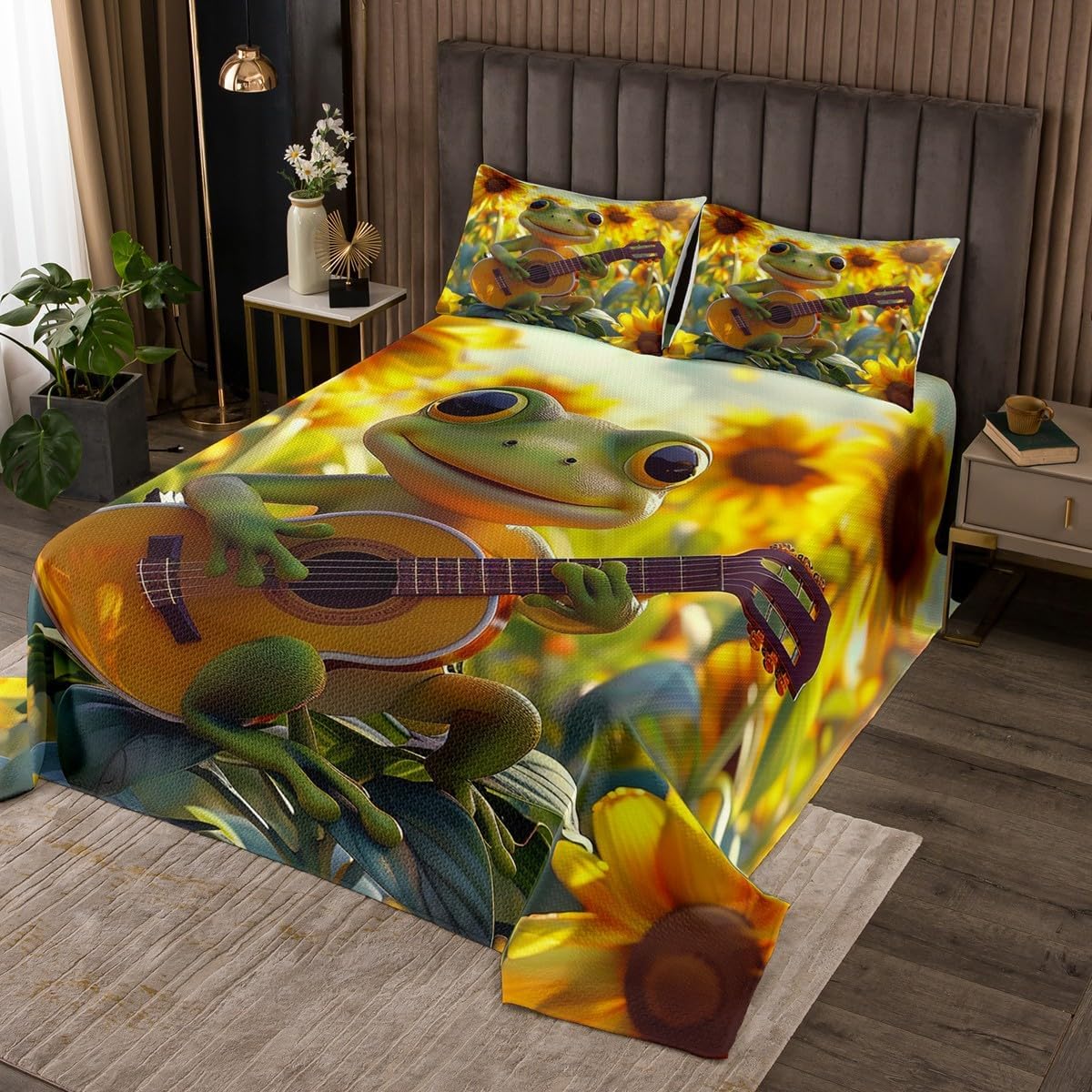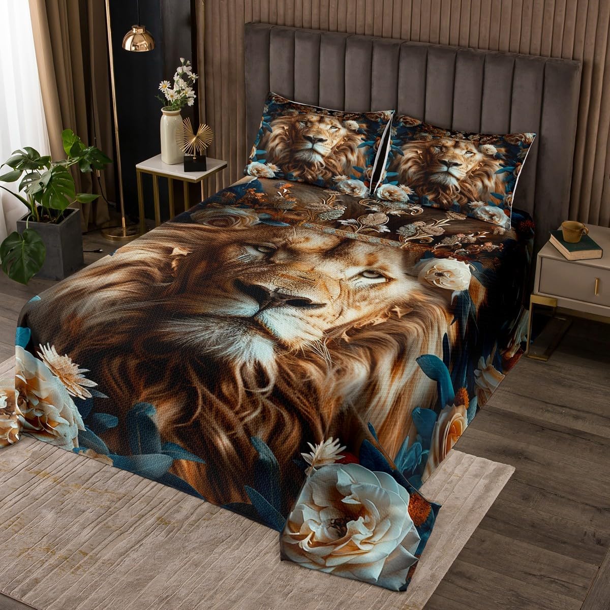 Package Include: Bedspread and Pillowcase. Makeover your bedrooms every season with our bedspread! Perfect item for your room, girls boys youth room, master bedroom. Size Information: Twin size quilted bedspread 68"W x 90"L and 1 quilted pillow sham 30"W x 20"L Queen size quilted bedspread 90"W x 90"L and 2 quilted pillow shams 30"W x 20"L King size quilted bedspread 104"W x 90"L and 2 quilted pillow shams 36"W x 20"L Useful and practical: A luxurious product for homes, dorm rooms, hotels, guest rooms. Practical to use for being polyester, feels like cotton which is Super Soft and Breathable. No chemicals used, No dye substance harming the health of you or your family. Unique design: Vivid Colors won't fade thanks to new 3D digital printing methods. These unique designs match well with various color palettes of your rugs, curtains, headboard, furniture, and all other decor accessories. Personalized: As manufacturers of digital printed home textiles, we follow current trends and bring you the latest home fashion. More Decor: Search our store to get more christmas theme, new year theme, autumn fall theme, any holiday theme, modern abstract, farmhouse rustic theme, simple pattern, garden flowers etc. home decoration. Note: The Bedspread and Pillow Shams are printed on the Front Side Only, the back of them are white colored. Comforter is Not Include in the set. Warm Tips: 1. Please allow 1-3cm error due to manual measurement. 2. Actual color may vary from the color on your screen due to monitor color restrictions.