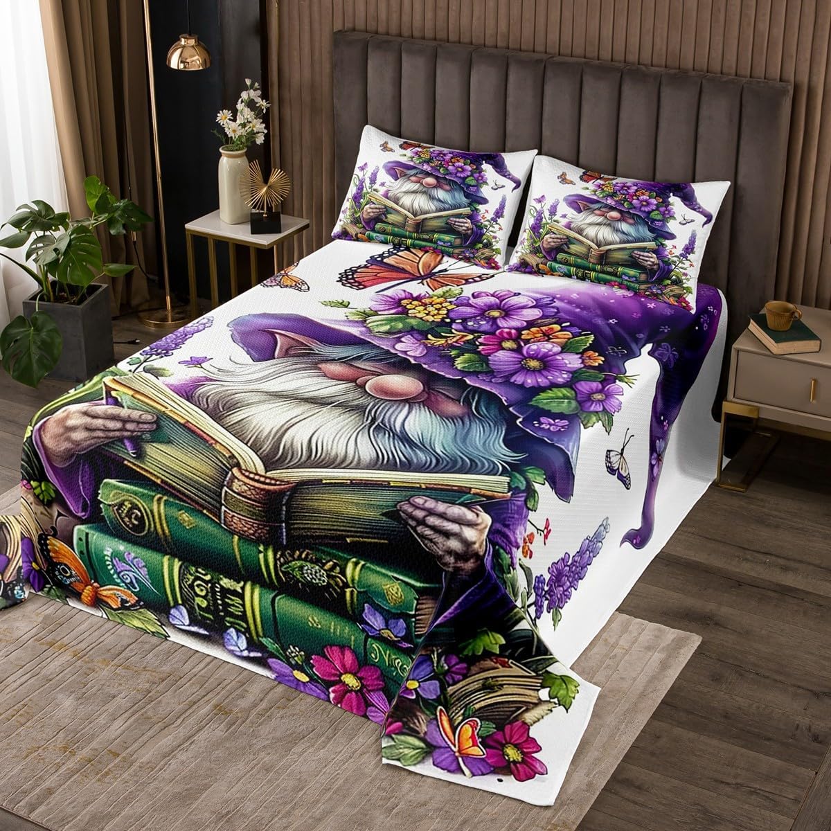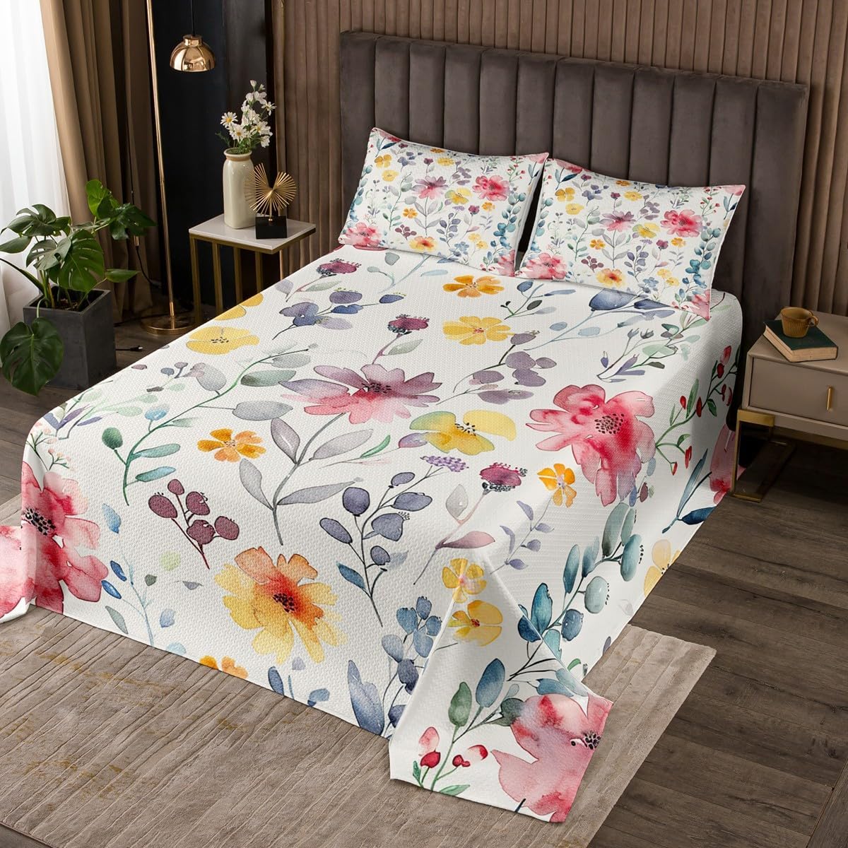 Package Include: Bedspread and Pillowcase. Makeover your bedrooms every season with our bedspread! Perfect item for your room, girls boys youth room, master bedroom. Size Information: Twin size quilted bedspread 68"W x 90"L and 1 quilted pillow sham 30"W x 20"L Queen size quilted bedspread 90"W x 90"L and 2 quilted pillow shams 30"W x 20"L King size quilted bedspread 104"W x 90"L and 2 quilted pillow shams 36"W x 20"L Useful and practical: A luxurious product for homes, dorm rooms, hotels, guest rooms. Practical to use for being polyester, feels like cotton which is Super Soft and Breathable. No chemicals used, No dye substance harming the health of you or your family. Unique design: Vivid Colors won't fade thanks to new 3D digital printing methods. These unique designs match well with various color palettes of your rugs, curtains, headboard, furniture, and all other decor accessories. Personalized: As manufacturers of digital printed home textiles, we follow current trends and bring you the latest home fashion. More Decor: Search our store to get more christmas theme, new year theme, autumn fall theme, any holiday theme, modern abstract, farmhouse rustic theme, simple pattern, garden flowers etc. home decoration. Note: The Bedspread and Pillow Shams are printed on the Front Side Only, the back of them are white colored. Comforter is Not Include in the set. Warm Tips: 1. Please allow 1-3cm error due to manual measurement. 2. Actual color may vary from the color on your screen due to monitor color restrictions.