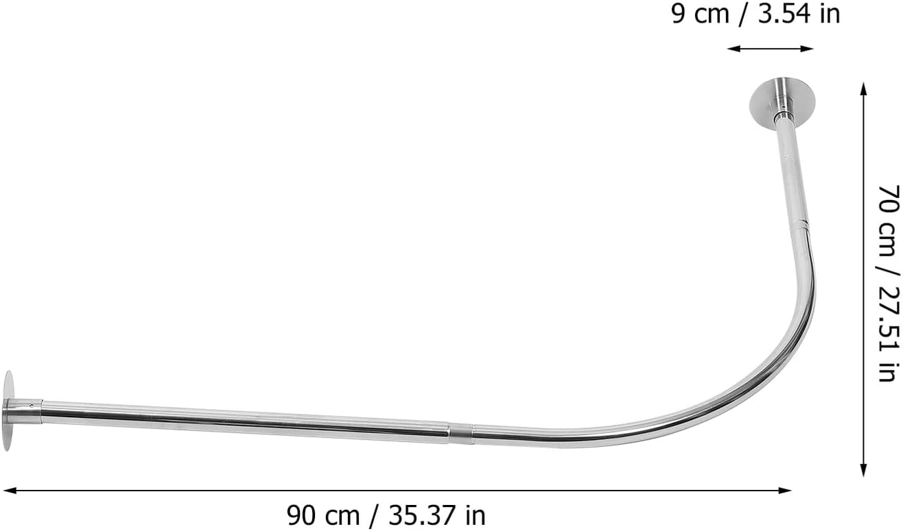 Package Include 1 x Curved Shower Curtain Rod 1 x Glue Characteristics -Material:Stainless steel -Note: Telescopic range: 70-95cm, 90-130cm bathroom curtain stick -Color:Silver -Size:90.00X70.00X9.00cm/35.37X27.51X3.54in -Product Info:Arc telescopic rod -This versatile pole can be used for hanging clothes, hanging the shower curtain, and more, making it a great addition to any home bathroom telescopic rod. -The modern and fashionable appearance of the tension rod makes it easy to match well with most home decorating styles extendable curtain rod. -With a convenient and quick installation process, this curtain pole can be easily set up quickly telescoping curtain rod. -The adjustable length of this curtain rod allows it to fit perfectly in a variety of different spaces bathroom curtain rod. -Made from stainless steel materials, this tension curtain rod is built to last.Goods Descriptiontension shower rod With its adjustable length, it can easily fit into different spaces and adapt to various scenarios.adjustable curtain rod Made from stainless steel material, this extension rod is not only but also reliable.shower curtain pole The Telescopic Curtain Rod is a versatile and convenient solution for all your hanging needs