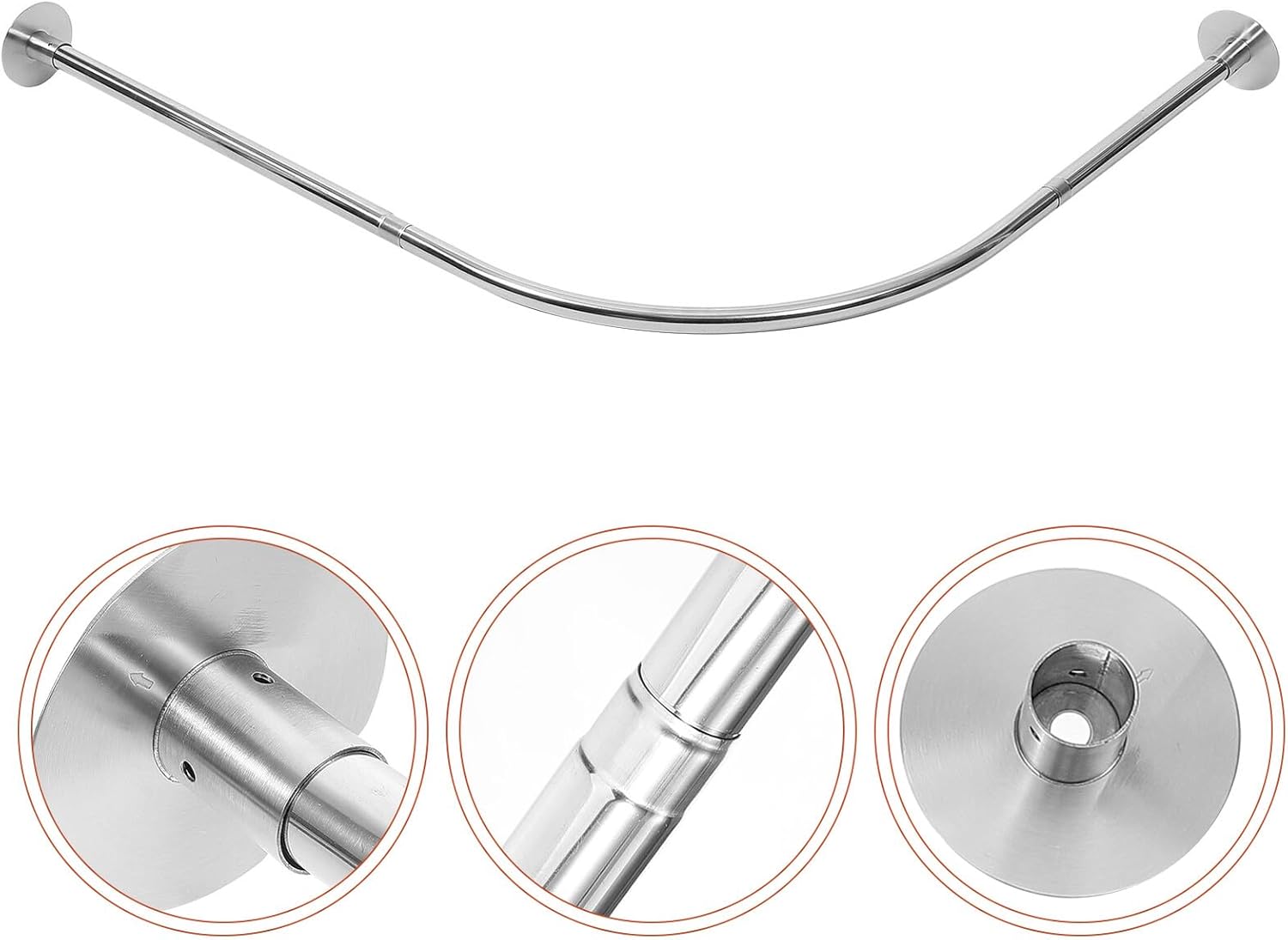 Package Include 1 x Curved Shower Curtain Rod 1 x Glue Characteristics -Size:90.00X70.00X9.00cm/35.37X27.51X3.54in -Color:Silver -Product Info:Arc telescopic rod -Material:Stainless steel -Note: Telescopic range: 70-95cm, 90-130cm tension curtain rods - Our Multipurpose Telescopic Rod is a very practical clothes drying pole, curtain rod, closet rail, etc shower curtain tension rod. - This multi-functional tension loaded curtain rod is easy to install, just operate it easily telescoping shower rod. - This telescopic pole has good bearing ability, and can be fixed on the wall stably to avoid falling off curtain rods. - The surface is smooth and comfortable to touch, don't have to worry about hurting your hands when using this rod curved shower curtain rod. - Telescopic Rod is very convenient, which allows you to adjust it to the length according to your different needs shower curtain rod tension.Goods Descriptionshower rods for bathroom The modern and fashionable appearance of the tension rod makes it easy to match well with most home decorating styles.shower curtain rods for bathroom With telescoping structure, the heavy-duty curtain rod can be adjusted freely and is suitable for many places and scenes
