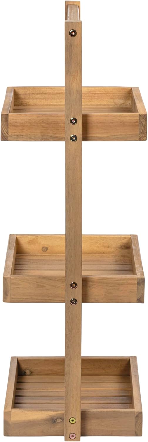This classic 3-tier storage caddy fits easily into small spaces. The rustic slatted design is made from water-resistant acacia wood with a protective oil finish. Set one in the shower, beside the tub, or use it as a plant stand indoors or outdoors.