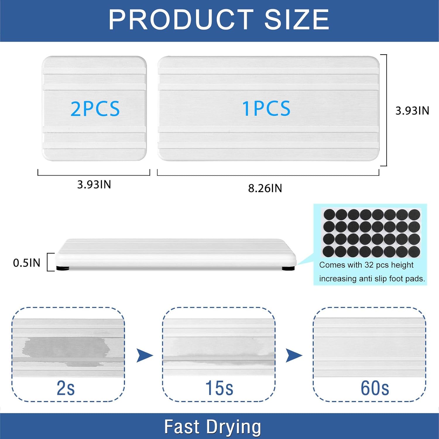 | Recommended Uses For Product | Can be used as water absorbent coaster for hand soaps, dish soap, cups, makeup bottle, dish washing sponge, toothbrush holder, cosmetic bottle, or anywhere you need to quickly absorb water and keep the surface of the countertop dry. |