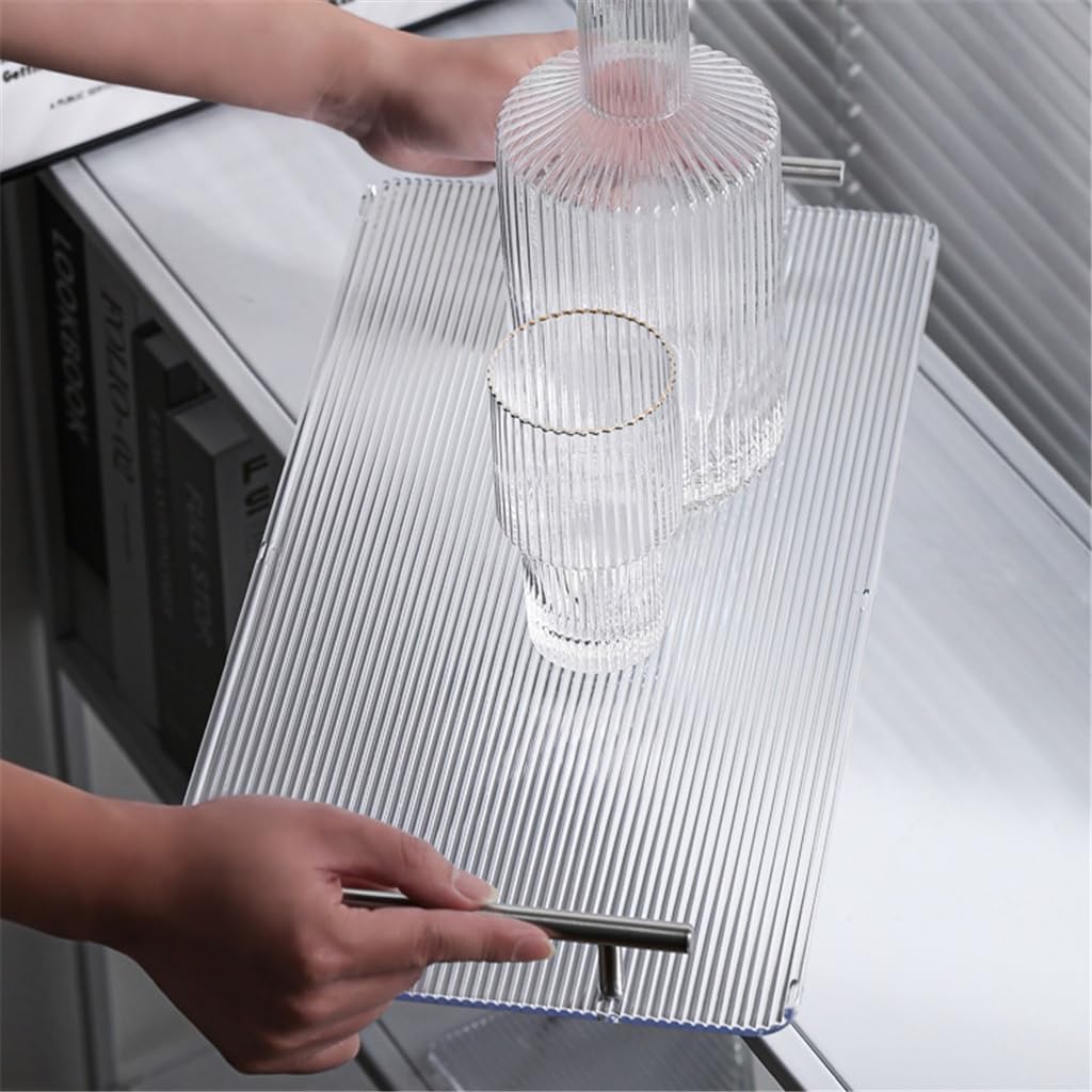 Striped acrylic feel, easy movement.Adortise a beautiful life, joker household.A variety of uses, beautiful and generous.Convenient storage, to meet the needs of the home, do not occupy space.Home miscellaneous parts storage, fruit fruit plate, jewelry storage.Material: acrylic.Dimension: 42 * 22 * 4cm.Packaging list: Tray * 1.Note:Please understand that colors may exist chromatic aberration as the different placement of pictures.Please allow 1-m error due to manual measurement and make sure you do not mind before ordering. thanks!The dressing table tray can create additional storage space in areas such as the bathroom dressing table, desk, dressing table, office desk, etc.