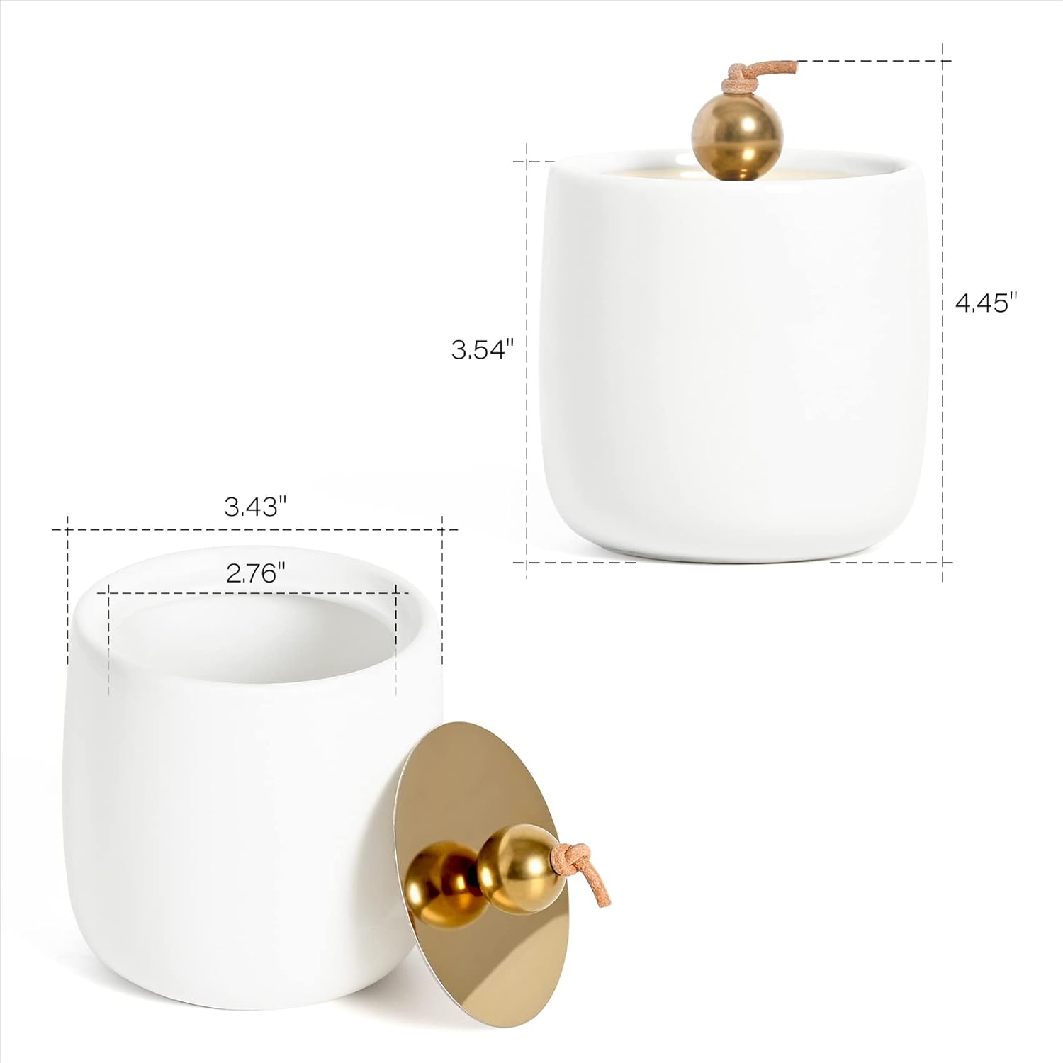 • Bathroom Jars With Lids Set - Constructed from premium ceramic (white glaze finish), while a gold lid with a ball grip is the finishing touch.