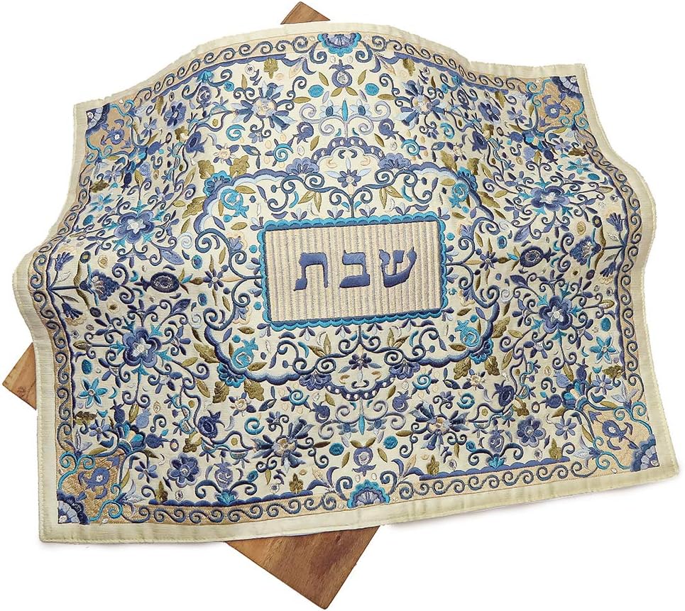 Bring some color to your Shabbat dinner with this machine embroidered challah bread cover. Designed by famous Israeli Judaica artist Yair Emanuel, This high quality challah cover is embroidered with an oriental Floral Illustration . The unique design is inspired by middle eastern motifs found throughout the Holy Land. In the Center is embroidered “Shabbat'' in hebrew, which translates to “Sabbath’'. The Cover is made of High-quality Cotton and Polyester, with a luxurious silk embroidery. The Bread cover is used as part of the Traditional Jewish Shabbat (Sabbath) meal. And Covers the Challah bread before blessing and eating it as part of the friday dinner ritual. This challah cover is a perfect addition to your shabbat table as well as a great gift idea for jewish occasions such as wedding, bar-mitzvahs , Bat-Mitzvahs, Briths or as housewarming and thank you gifts.