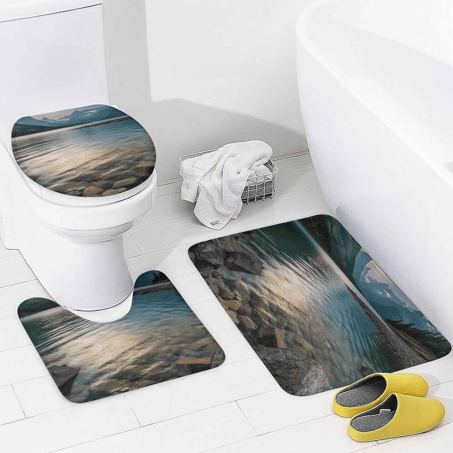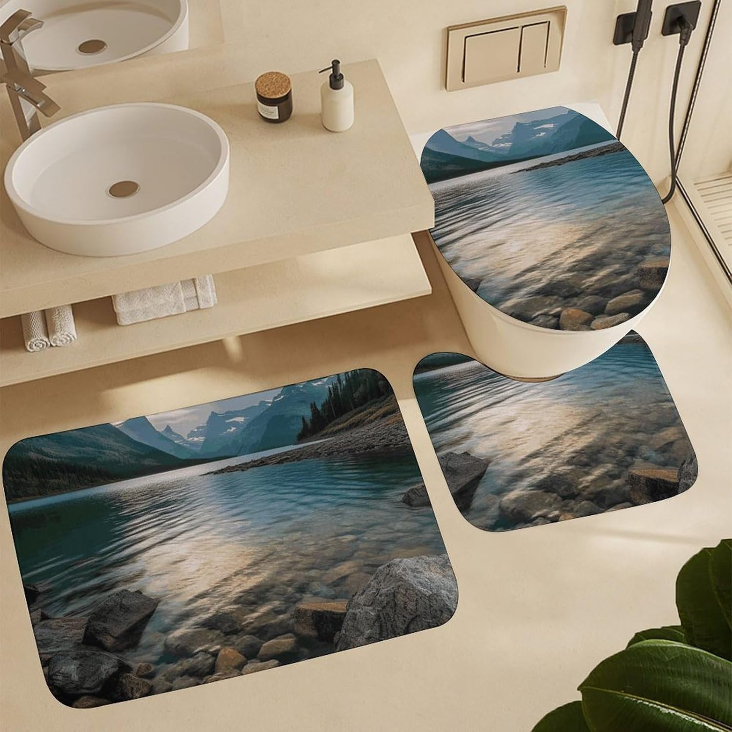 Welcome to a Cozier, More Organized BathroomComplete Bath Mat Set Cute Shower Curtain Set Bath Accessories Set Bathroom Set with Shower Curtain Bathroom Decor Soft Bath Mat Bathroom Decor Set Bathroom Rug Bathroom Floor Mat Housewarming Gift Bathroom Vanity Mat Luxury Bathroom Mats Set for Tub Side Bath Mats for Bathroom SetLuxurious Comfort UnderfootOur thick, velvety coral fleece bath mats are exceptionally soft and gentle on your skin. They are highly absorbent, quickly wicking moisture away from your feet after a shower or bath, leaving your bathroom floor dry and preventing slips.Functional Protection & PrivacyThe included waterproof Oxford fabric shower curtain is a reliable barrier against water spray, protecting your bathroom from moisture. It ensures privacy while its sleek look complements most decors. The matching toilet lid cover adds a finished, hygienic touch to your toilet.Thoughtful Details for Your ConvenienceThe modern shower curtain set feature a secure non-slip backing to keep them firmly in place. The set comes ready to use with 12 durable C-shaped plastic hooks for the curtain. Achieving a put-together bathroom has never been easier.Easy Care for Lasting BeautyMaintaining a fresh, clean bathroom is simple. The mats fluff up nicely after washing. We recommend gentle hand washing to best preserve the fabric's softness and color vibrancy. The shower curtain can be wiped clean with a damp cloth.Create Your SanctuaryIdeal for master bathrooms, guest suites, apartments, dormitories, or rental properties. This set is the perfect gift for housewarmings, new homeowners, or anyone looking to upgrade their bath space with minimal effort and maximum style.