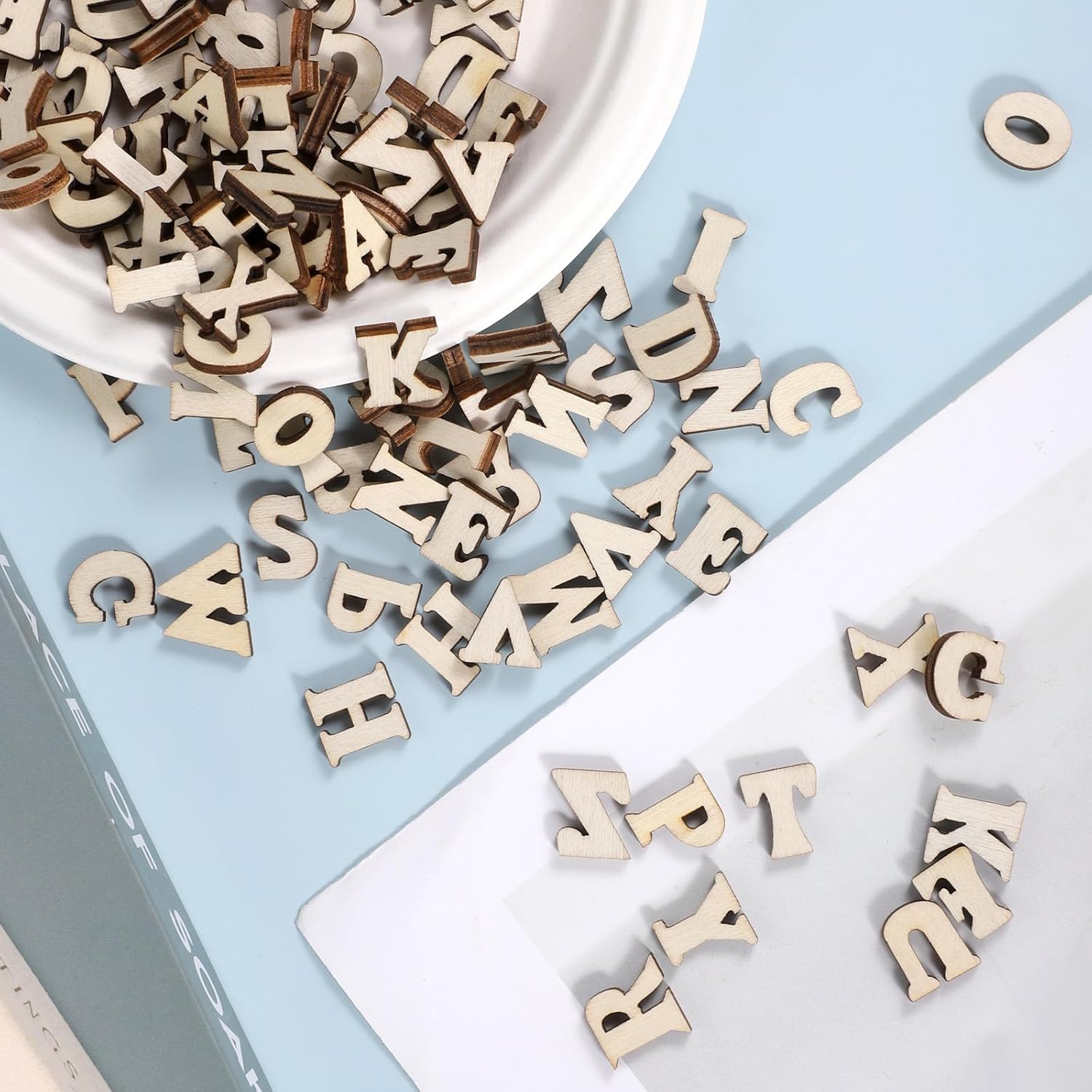 Product Name: Wooden Decoration Material: wood. Colour: natural wood. Gross weight (g): 54.2 Product Size(cm): Length 15mm; Slight deviation is allowed Box contents: length 24 cm x width 16 cm x height 1.5 cm. Delivery packaging: ziplock bag Delivery packaging: EVB002 Package Includes:208 pieces natural wood color English letters, 208 pieces per pack
