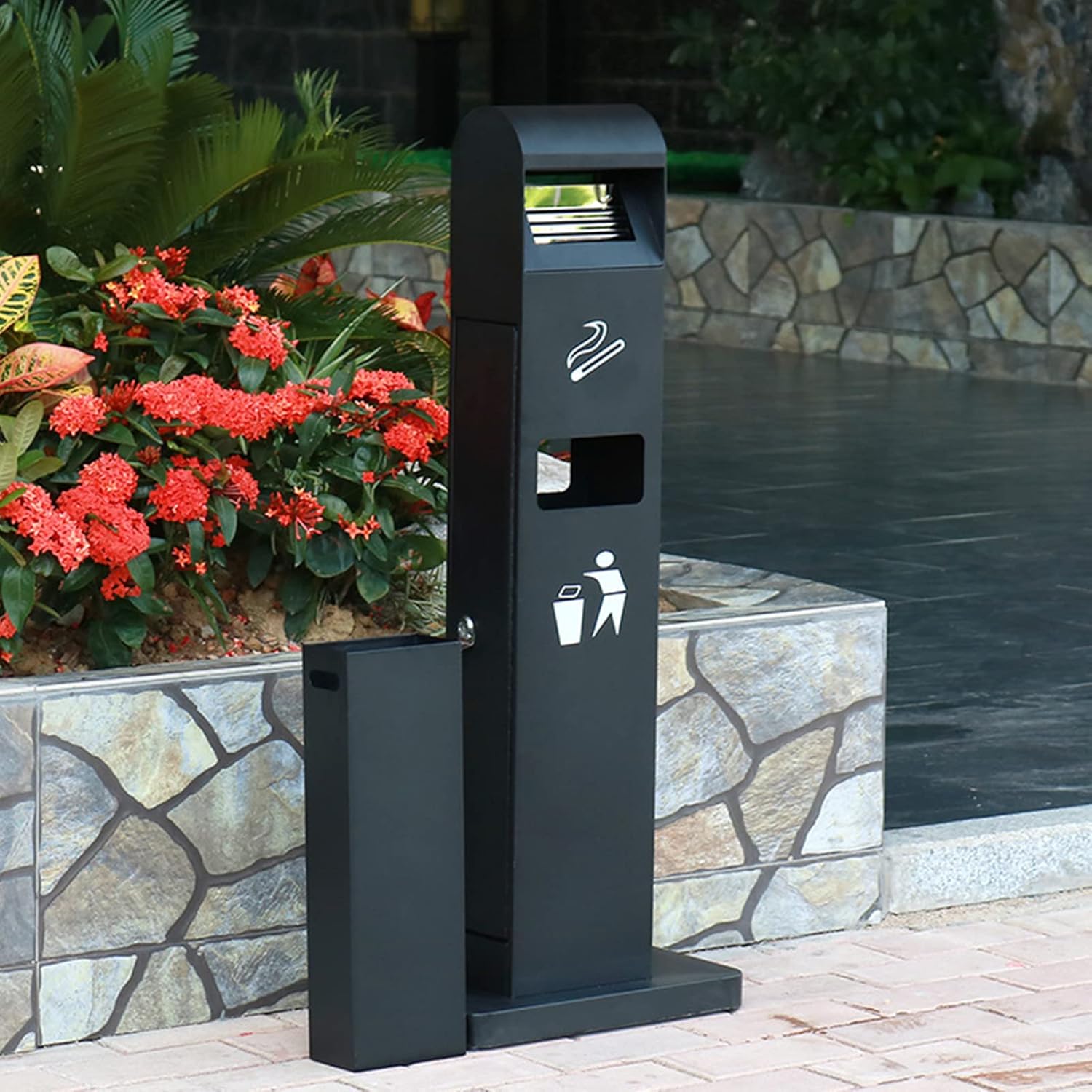 Introducing our Outdoor Standing Ashtray, a perfect solution for maintaining clean and smoke-free environments in various settings. Crafted from durable iron with a sleek black finish, this standing ashtray seamlessly blends with your outdoor decor, making it an ideal addition to gardens, patios, and balconies. Designed with a modern aesthetic, this column ashtray features an integrated waste bin, allowing for easy disposal of cigarette butts and other waste. Measuring 40x26cm at the base and standing 105cm tall, it provides a stable and convenient smoking area for both indoor and outdoor use. Its detachable ashtray can be used independently, making it versatile for different locations, including elevators, restaurants, and outdoor events. The easy-to-clean design ensures that maintaining this standing ashtray is a breeze, promoting a tidy environment for smokers and non-smokers alike. With its thoughtful features and stylish look, our standing ashtray not only enhances the cleanliness of your space but also adds a touch of sophistication. Choose our Outdoor Standing Ashtray for a practical and elegant solution to outdoor waste management. It's perfect for anyone looking to create inviting smoking areas without compromising on cleanliness or style.