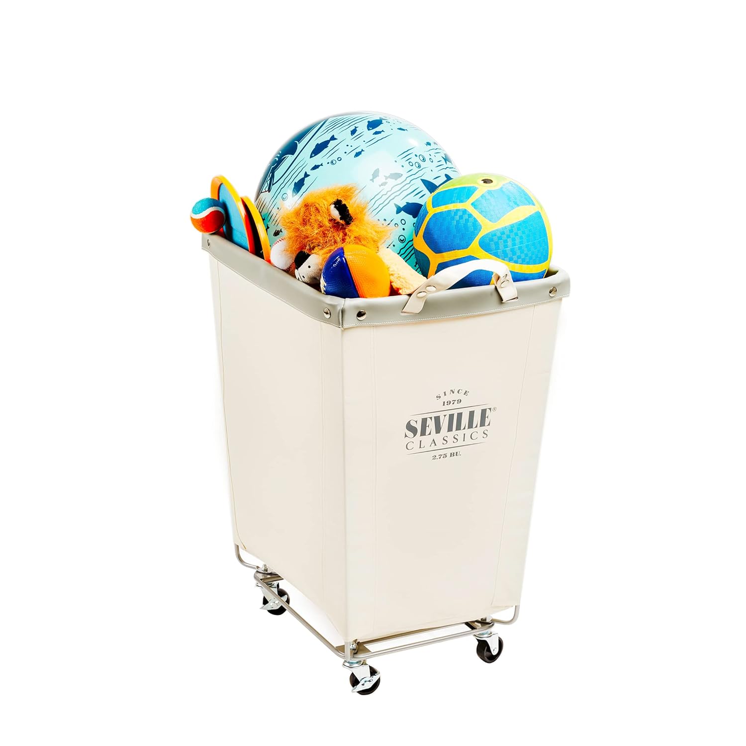 Take care of all your laundry needs with the Seville Classics Commercial Heavy-Duty Canvas Laundry Hamper with Wheels! This easy-to-assemble laundry hamper is designed for heavy-duty commercial use in hospitals, gyms, hotels, schools and business. It’s engineered with a tubular steel frame and a tough, polyester canvas laundry bag capable of holding up to 80 lbs. Our cart is designed for high-volume heavy use and is lined with a thick thermoplastic lip to help prevent fraying around the edges. Large canvas handles snap on to the bag, making it easy to control when fully loaded. Two of the wheels lock for stability whether you’re getting clothes from the bedroom or unloading in the laundry room. It’s the perfect family-size hamper for large homes and shared living spaces like dorms. The cart is lightweight and easy to carry when empty. Use the cart for more than a cart for dirty clothes. Store gardening equipment like rakes and shovels in the heavy-duty polyester bag. It’s perfect for holding balls, rackets, and skateboards and a bin for outdoor sports equipment. Store pool noodles, flippers, water wings and other wet items. Assembling the cart is easy taking only a few minutes. All required tools are included with detailed assembly instructions. Patent pending. • 100% polyester canvas laundry bag in natural white/gray – PVC Trim • Tapered square steel wire frame with gray epoxy coat for strength and durability • Hamper top lined with protective thermoplastic trim in gray • Two removable, thick canvas handles • Four 2-inch rubber swivel wheels with steel hardware; two locking
