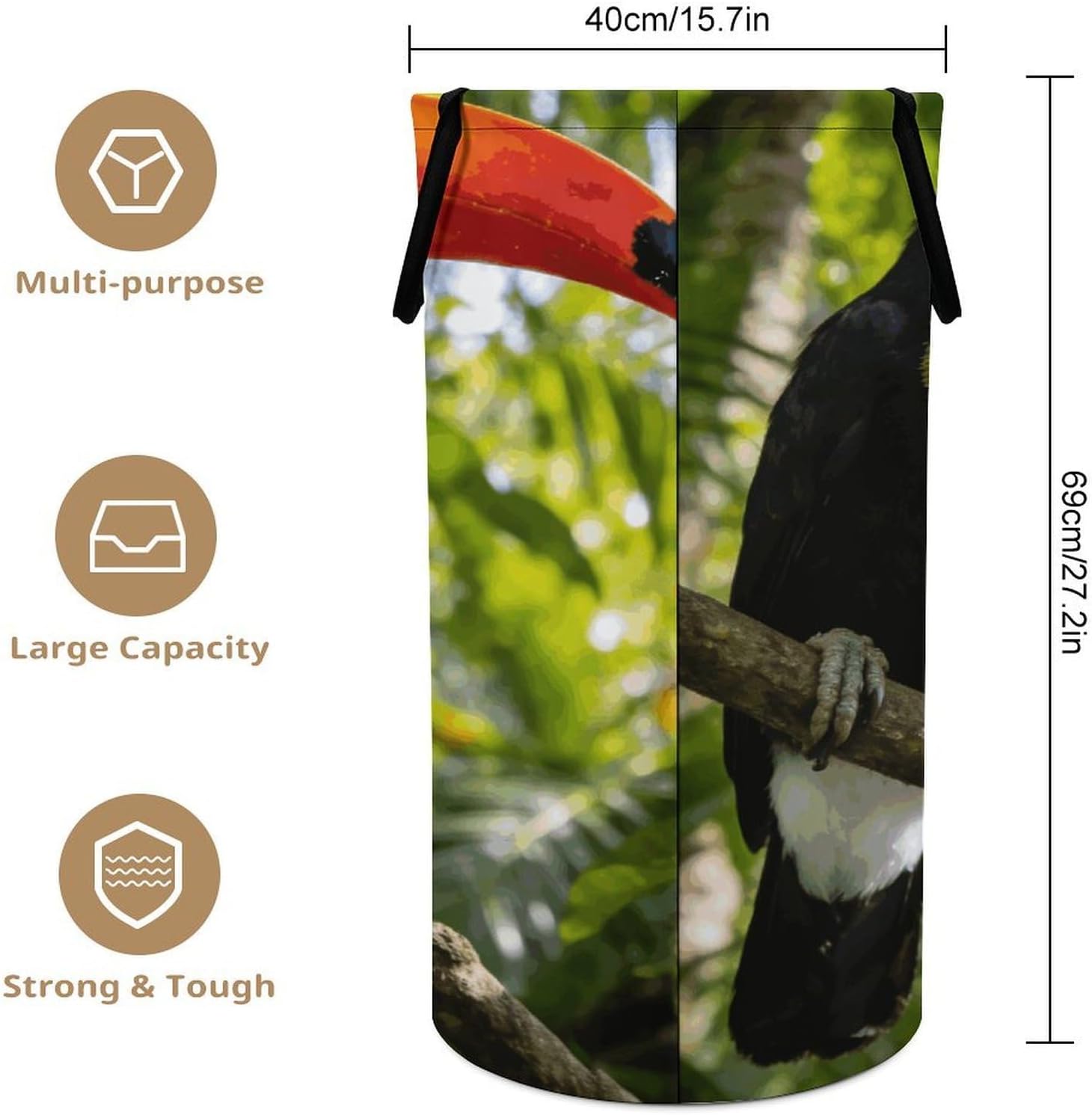 The pattern of the Toucan hamper is printed with exquisite patterns, which makes the product more attractive.Chic design allows it to be used in the living room to hold throw blanket, pillows, and reading materials, as well as in the bathroom for towels, or as a laundry hamper.The laundry hamper adopted collapsible design, equipped with handles. It is lightweight and portable for using, storing, and moving conveniently.Toucan Clothes hamper is suitable to store dirty clothes washing, place in the room to store toys, and other household goods, keep the house clean and tidy. Perfect laundry hamper for home, office, closet organizer, bedroom, bathroom, college dorm, etc.Gets out of your way when you need it to. This storage basket or laundry hamper is a good gift, which not only meets everyday storage needs but also carries deep care and love, a perfect way to turn thoughtfulness into warmth.