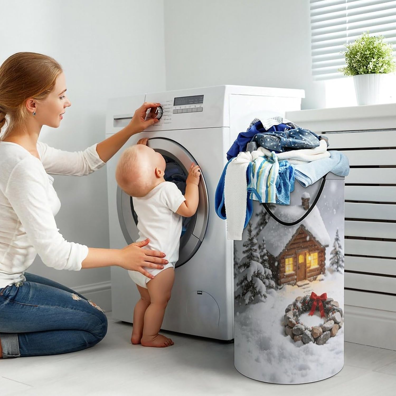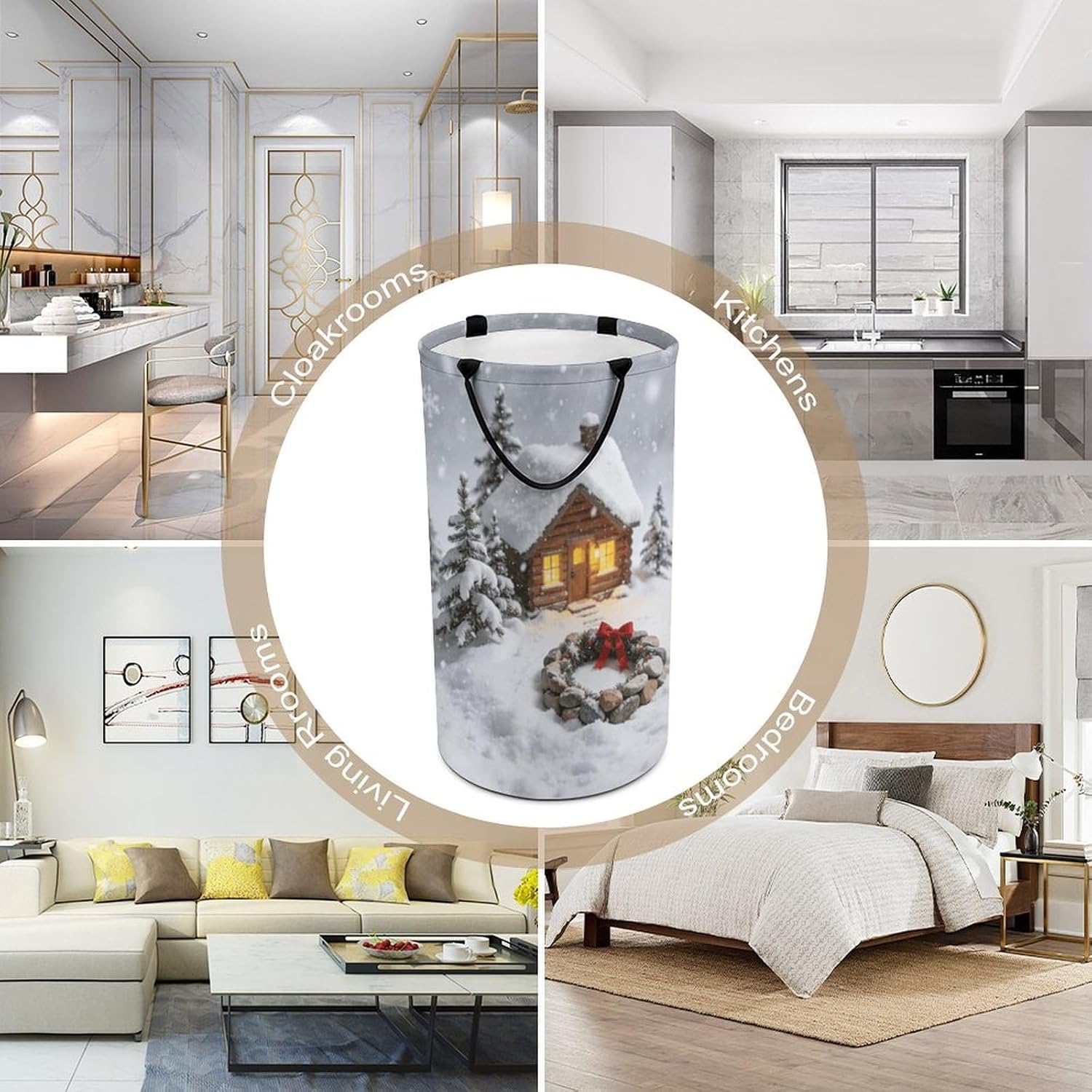 The pattern of the White Christmas hamper is printed with exquisite patterns, which makes the product more attractive.Chic design allows it to be used in the living room to hold throw blanket, pillows, and reading materials, as well as in the bathroom for towels, or as a laundry hamper.The laundry hamper adopted collapsible design, equipped with handles. It is lightweight and portable for using, storing, and moving conveniently.White Christmas Clothes hamper is suitable to store dirty clothes washing, place in the room to store toys, and other household goods, keep the house clean and tidy. Perfect laundry hamper for home, office, closet organizer, bedroom, bathroom, college dorm, etc.Gets out of your way when you need it to. This storage basket or laundry hamper is a good gift, which not only meets everyday storage needs but also carries deep care and love, a perfect way to turn thoughtfulness into warmth.