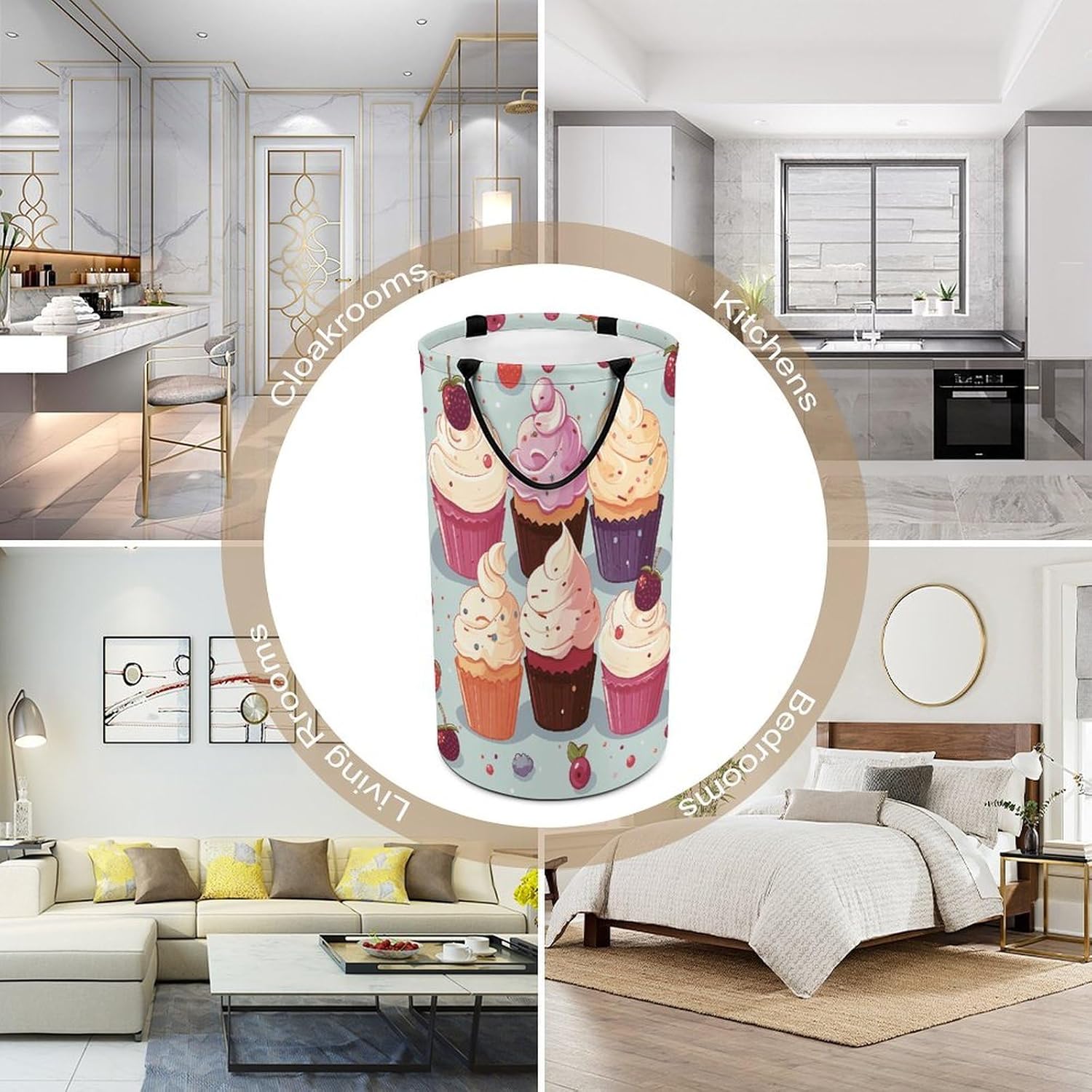 The pattern of the Delicious Cupcakes hamper is printed with exquisite patterns, which makes the product more attractive.Chic design allows it to be used in the living room to hold throw blanket, pillows, and reading materials, as well as in the bathroom for towels, or as a laundry hamper.The laundry hamper adopted collapsible design, equipped with handles. It is lightweight and portable for using, storing, and moving conveniently.Delicious Cupcakes Clothes hamper is suitable to store dirty clothes washing, place in the room to store toys, and other household goods, keep the house clean and tidy. Perfect laundry hamper for home, office, closet organizer, bedroom, bathroom, college dorm, etc.Gets out of your way when you need it to. This storage basket or laundry hamper is a good gift, which not only meets everyday storage needs but also carries deep care and love, a perfect way to turn thoughtfulness into warmth.