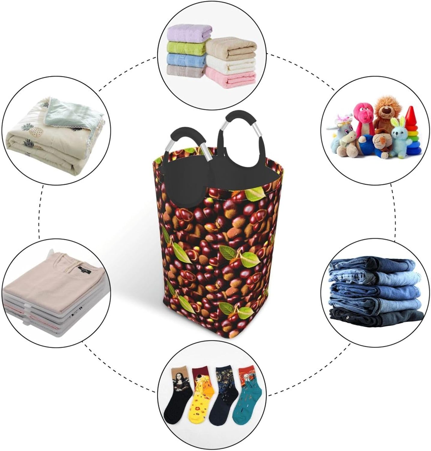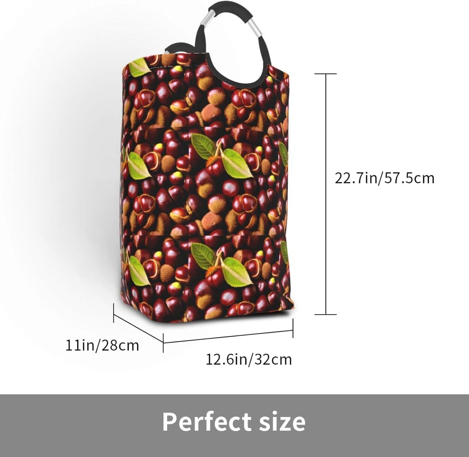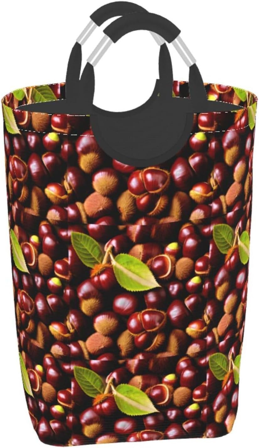 Our Fresh chestnuts dirty clothes storage bag is made of polyester, which is lightweight and flexible. It can maintain a stable shape even under heavy pressure and collision. At the same time, the incorporation of Oxford cloth material significantly improves the durability of the product, and it is resistant to wear, bumps and pulling. The storage bag is designed with a large capacity, which can easily carry winter clothes, daily clothes and a variety of sundries. It is easy to carry and store, and fits tightly into the gap of the suitcase after folding. The aluminum handle is sturdy and reliable, supports hanging, and is suitable for a variety of places. In terms of design, it adopts leak-proof technology, combined with waterproof coating and precision sewing, which is effectively waterproof. The exterior uses cutting-edge transfer technology, and a PE board support is added at the bottom to ensure stable load-bearing and prevent tipping. This storage bag is practical and easy to use, and is an ideal choice for travel and home.