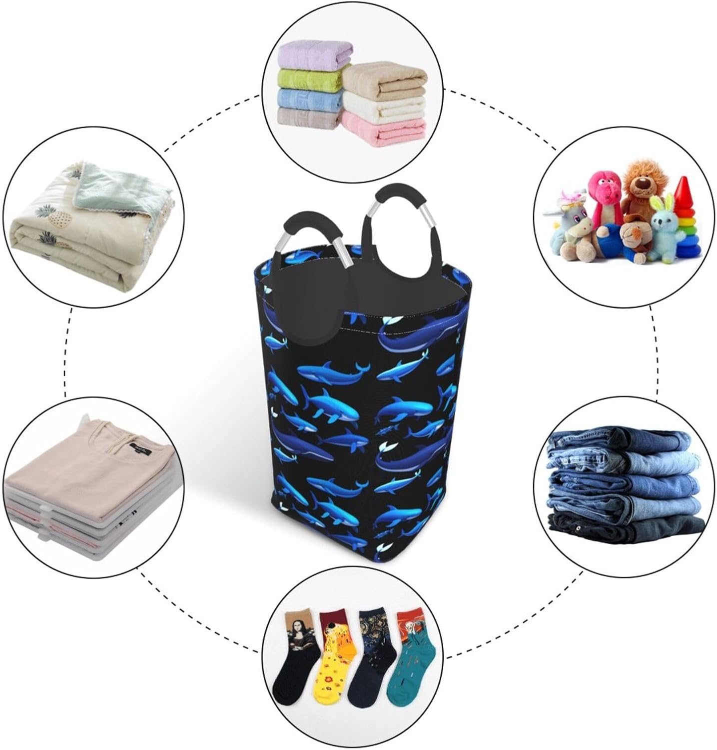Our Cyber Whale dirty clothes storage bag is made of polyester, which is lightweight and flexible. It can maintain a stable shape even under heavy pressure and collision. At the same time, the incorporation of Oxford cloth material significantly improves the durability of the product, and it is resistant to wear, bumps and pulling. The storage bag is designed with a large capacity, which can easily carry winter clothes, daily clothes and a variety of sundries. It is easy to carry and store, and fits tightly into the gap of the suitcase after folding. The aluminum handle is sturdy and reliable, supports hanging, and is suitable for a variety of places. In terms of design, it adopts leak-proof technology, combined with waterproof coating and precision sewing, which is effectively waterproof. The exterior uses cutting-edge transfer technology, and a PE board support is added at the bottom to ensure stable load-bearing and prevent tipping. This storage bag is practical and easy to use, and is an ideal choice for travel and home.