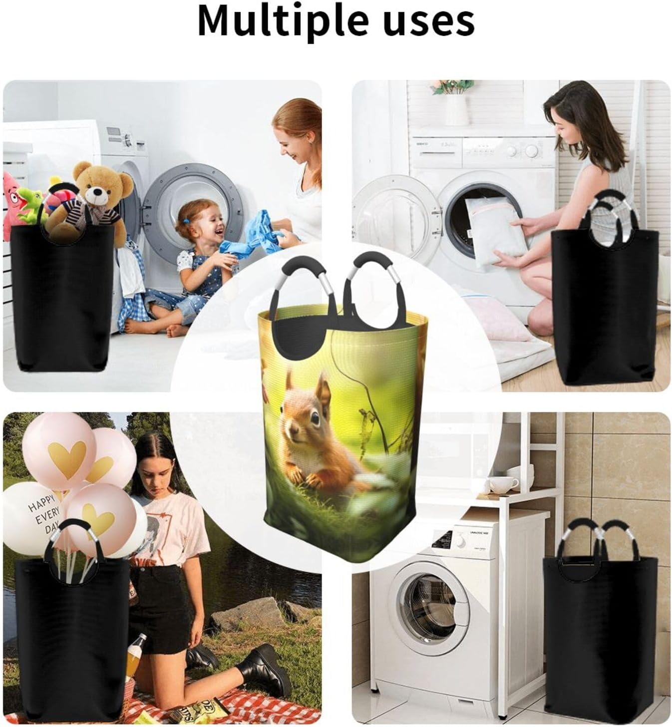 Our Cute little squirrel dirty clothes storage bag is made of polyester, which is lightweight and flexible. It can maintain a stable shape even under heavy pressure and collision. At the same time, the incorporation of Oxford cloth material significantly improves the durability of the product, and it is resistant to wear, bumps and pulling. The storage bag is designed with a large capacity, which can easily carry winter clothes, daily clothes and a variety of sundries. It is easy to carry and store, and fits tightly into the gap of the suitcase after folding. The aluminum handle is sturdy and reliable, supports hanging, and is suitable for a variety of places. In terms of design, it adopts leak-proof technology, combined with waterproof coating and precision sewing, which is effectively waterproof. The exterior uses cutting-edge transfer technology, and a PE board support is added at the bottom to ensure stable load-bearing and prevent tipping. This storage bag is practical and easy to use, and is an ideal choice for travel and home.