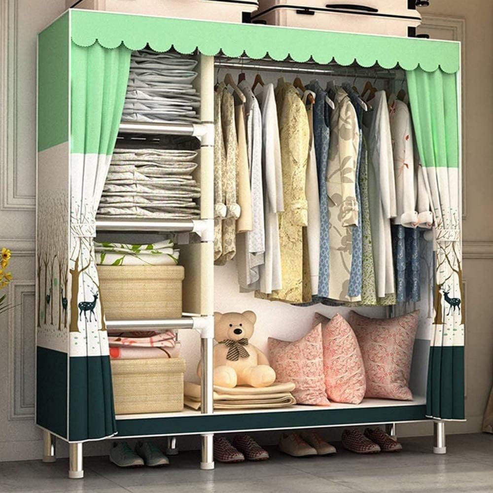 Welcome to My Store Practical, durable and stylish, this premium quality canvas effect wardrobe is a fantastic storage solution for any bedroom. Ideal for children's rooms, guest rooms, university accommodation, caravans or holiday homes.Product Specifications: - Name: fabric wardrobes - Fabric material: Thick polyester cotton cloth - Connector material: Thickened PP card holder - Pipe material:Bold steel pipe(26mm) - Product size: 49.2" x17.7" x 66.9" (125x45x170cm)Tips: 1. After the plastic parts are soaked in boiling water for one minute, the installation is more convenient. 2. The cut surface of the pipe is dangerous, please do not touch 3. Please confirm if some parts are complete 4. Plastic fittings, this long mouth is all installed downwardsPackage Contents: 1 * Closet WardrobeNote: If you have any questions when using the product, please contact us in time and we will reply to your email within 24 hours.