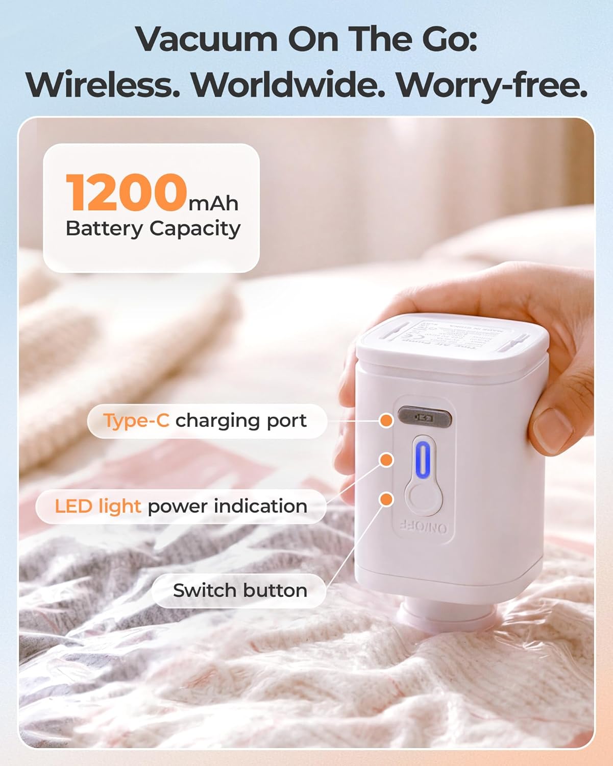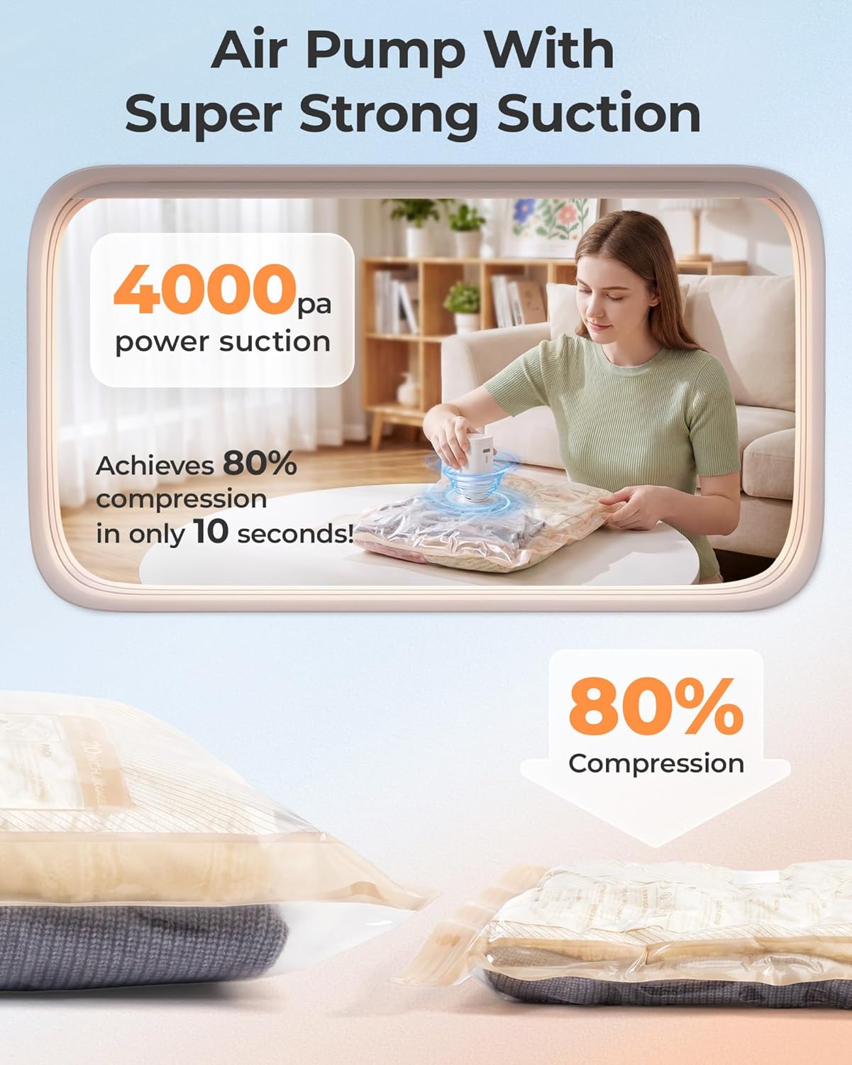 | Other Special Features of the Product | Customized Bag Size, High-Efficiency Compression, Rechargeable Air Pump, Type-C Charging, Vacuum Sealed |