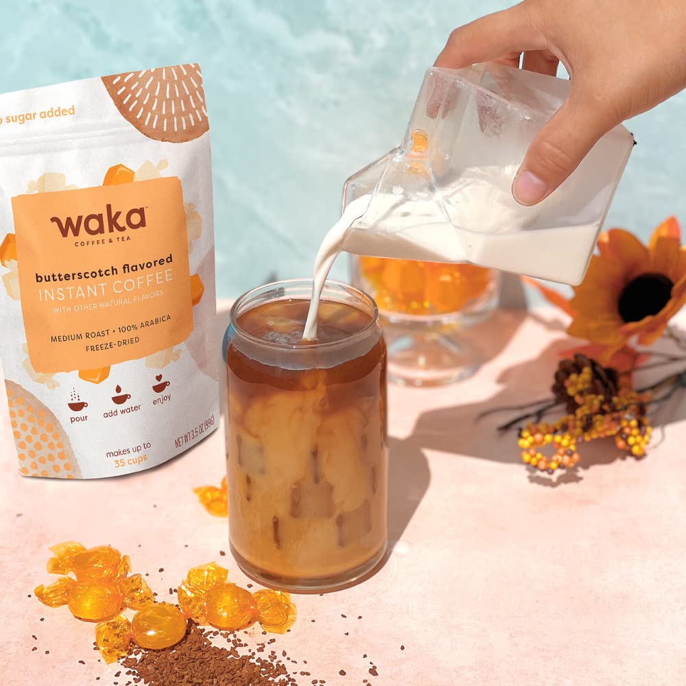 Waka Quality Instant Coffee — Unsweetened Butterscotch Flavored and Colombian Medium Roast Instant Coffee Bundle — 100% Arabica Freeze Dried Beans — No Sugar Added & Unsweetened