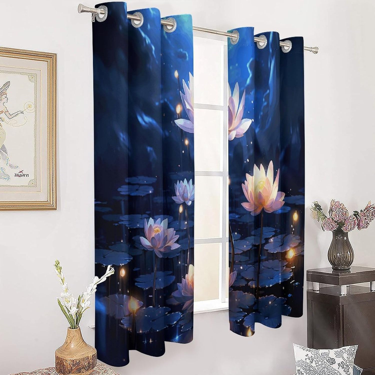 Night Flowers printed Blackout Curtain Is Made Of High-Quality And Thick Polyester Fabric. The Bedroom Curtains 2 Panel Sets Have An Elegant Drape And Beautiful Shape, Adding A Touch Of Refinement To Any Room. Cold Weather Thermal Curtains Have Good Insulation Effects, Keeping Rooms Warm In Winter And Cool In Summer. Grommet Curtains Are Suitable For Households, Restaurants, Farmhouses, Hotels, And More. Window Drapes Are The Perfect Choice For People Who Want To Block Out Sunlight And Take A Nap