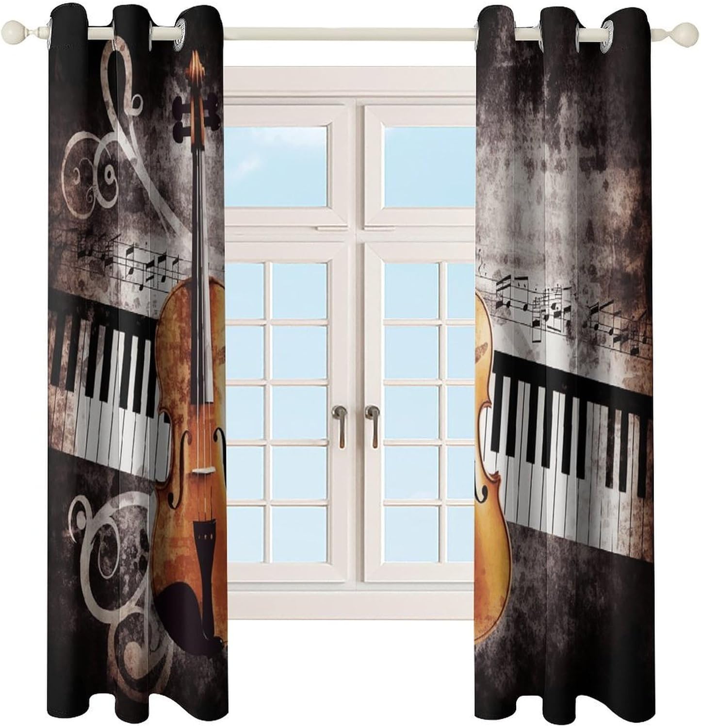 Piano Violin Music Notes printed Blackout Curtain Is Made Of High-Quality And Thick Polyester Fabric. The Bedroom Curtains 2 Panel Sets Have An Elegant Drape And Beautiful Shape, Adding A Touch Of Refinement To Any Room. Cold Weather Thermal Curtains Have Good Insulation Effects, Keeping Rooms Warm In Winter And Cool In Summer. Grommet Curtains Are Suitable For Households, Restaurants, Farmhouses, Hotels, And More. Window Drapes Are The Perfect Choice For People Who Want To Block Out Sunlight And Take A Nap