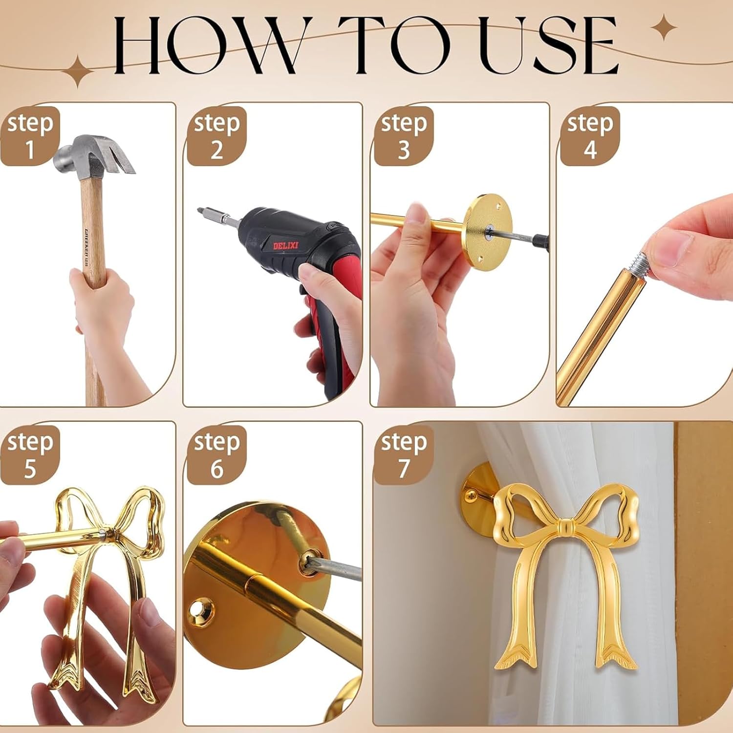 Pack of 2 Elegant Metal Bowknot Curtain Tiebacks Double Curtain Holders for Home Decors Sturdy Alloy S Hook for Window Drapery OrganizationFeatures:Enhances your home decors with these elegant metal bowknot curtain holders, crafted from sturdy alloy for long time and a touch of sophistication in any room.Featuring a rust finish and double purpose design, these S hooks securely hold heavy drapes while doubling as decorative organizers for keys or small accessories.Ideal for interior design enthusiasts and practical homeowners seeking stylish yet functional storage for curtains and household items.elevates bedroom drapes, secure living room curtains, or organize kitchen utensils – these versatile hooks adapt to bathrooms, nurseries, and entryways alike.The tool release installation systems combines sturdy alloy construction with dateless bowknot aesthetics, creating a user friendly alternative to fabric ties for modern households.Specifications:Materials: AlloySize:Aprpox.10.8x5x9.3cm/4.25x1.97x3.67inchesPackage Includes:2Pcs Metal Bowknot Curtain FixerNote:Please allow 1-2cm error due to manual measurement. Please make sure you do not mind before you bid.Due to the difference between different monitors, the picture may not reflect the actual color of the item. Thanks!