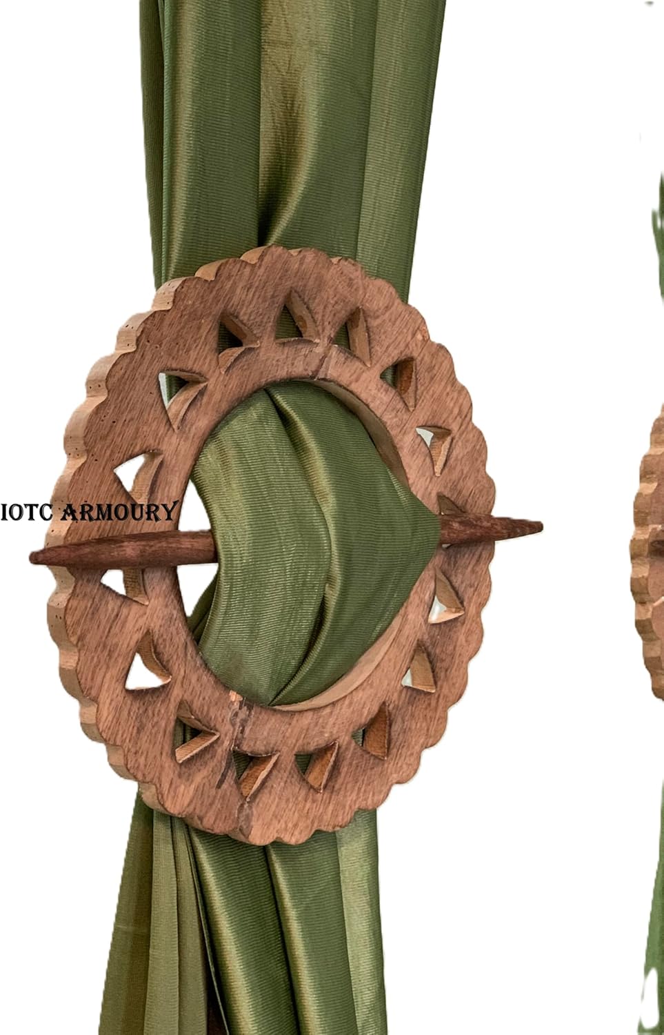 Wooden Curtain Tieback Set of 2 Round flower design Vintage Rustic Drapery Holdback Traditional Curtain Holder