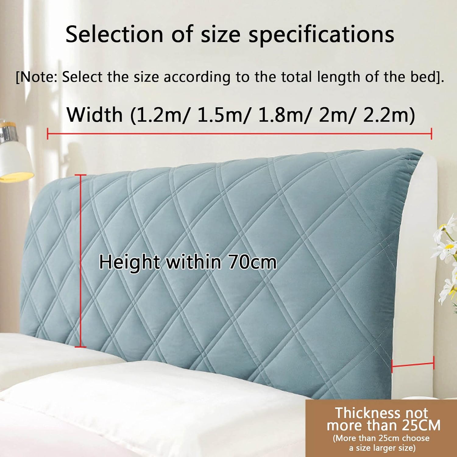 [Product name] all-inclusive models bed head cover [Product fabric] Super soft velvet + stretch fabric [Applicable season] Four seasons [Washing instructions] 1. room temperature wash, 2. no bleach, 3. hang to dry, 4. conventional dry cleaning [Size reference] 50-65*120cm (universal)/50-65*150cm (universal)/50-65*180cm (universal)/50-65*200cm (universal)/50-65*220cm (universal) 1. A new generation of active printing and dyeing process, using active printing and dyeing, health and environmental protection, high color fastness, not easy to lose color 2. The use of high-quality quilting sandwich cotton process, thickened cotton fine quilting fluffy soft even fixed filling 3. Stretch pull / no deformation, high elasticity fabric, with high strength and elastic recovery ability Warm tips: 1. Due to manual measurement and cutting, the product will have 2-5CM error, which is within the normal range, mind the pro-parents careful to shoot! 2 pictures are taken in kind, due to the shooting light and monitor differences, will cause a certain color difference is not a quality problem, please understand! Products include: Headboard set *1 Note: The product contains only 1 piece of headboard cover, please buy according to the situation