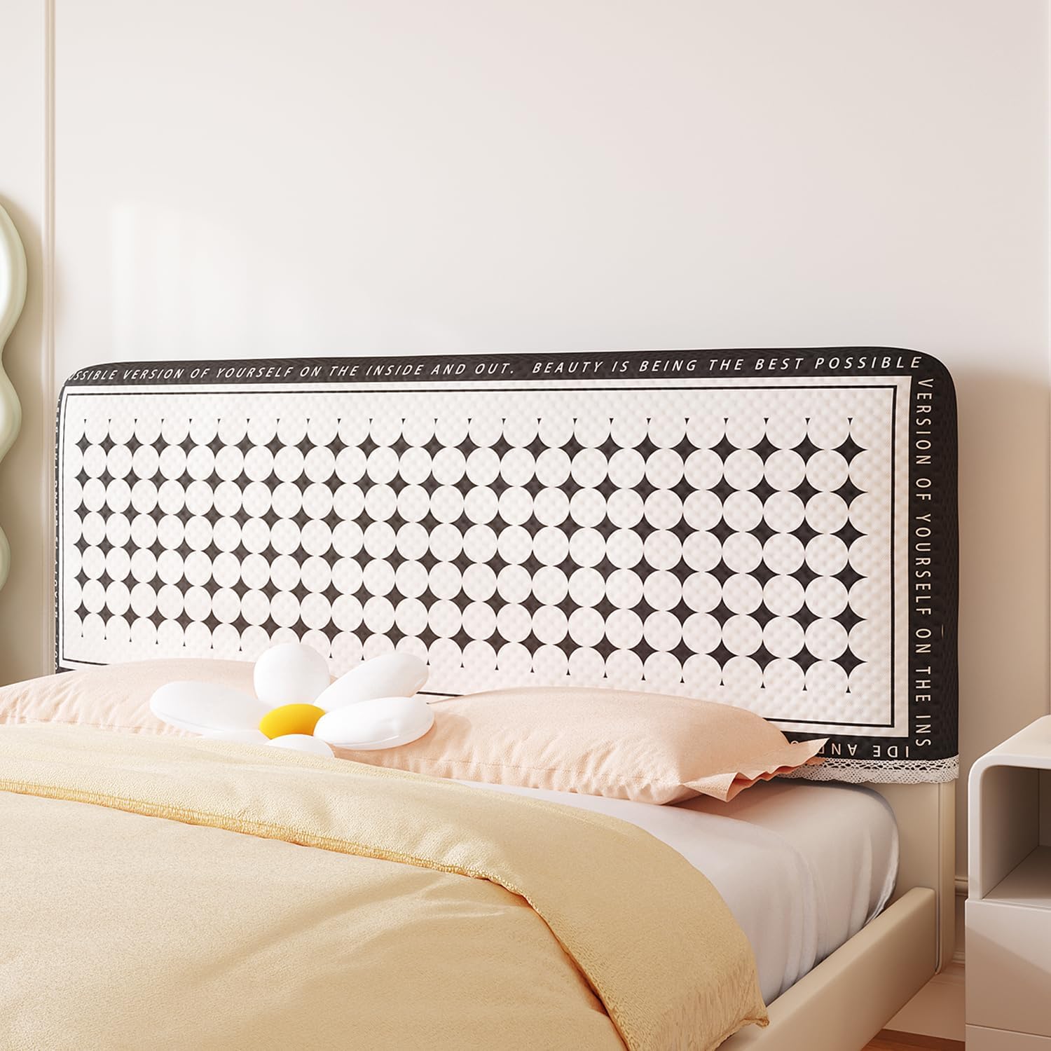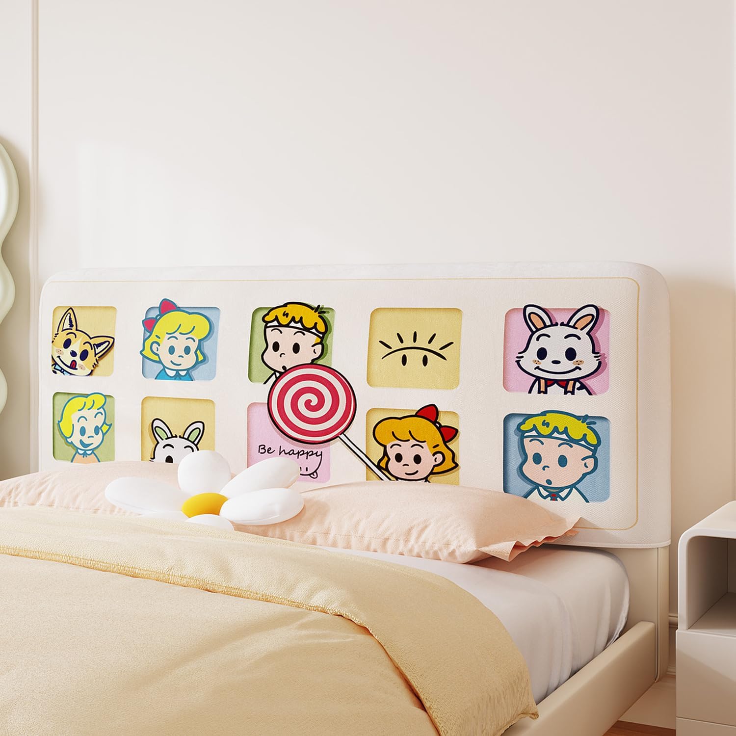 Super cute headboard coverGive your headboard a new lookHigh-quality headboard covers ideal for use in bedrooms and children's roomsMaterial:A-skin-friendly short velvet + environmentally friendly quilted cottonB-Skin-friendly short velvet + elastic fabricProcess: reactive printing and dyeingStyle: simpleSeason of use: all seasonsFeatures: DustproofHeight: 60cmSide thickness: 15cmColor: A,B,C,D,E,F,G,H,ISize.1m(39in)1.2m(47in)1.5m(59in)1.6m(63in)1.8m(71in)1.9m(75in)2m(79in)2.2m(87in)Notes.1.Before purchasing, please carefully measure the correct size of the headboard and select the appropriate size according to the size of your headboard.2. There are slight differences between the picture and the real item caused by brightness.3. Due to hand cutting and sewing, please allow 1-3cm size deviation.4. Before purchasing, carefully measure the correct size of the headboard, and then choose a suitable headboard cover based on the size of the headboard. This product is only suitable for flat and micro arc type headboards.Package Includes.1 x Bed Headboard Cover (headboard is not included).